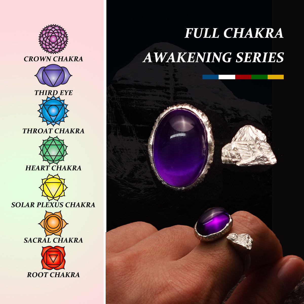 EastKarma CHAKRA AWAKENING RING SEVEN CHAKRA GEMSTONE STERLING SILVER ADJUSTABLE
