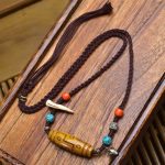 EastKarma Copper Nine-Eye Dzi Bead Bone Bead Luck Balance Necklace Pendants