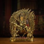 EastKarma GOLDEN MAHAKALA GODDESS WITH SACRED HORSE STATUE FOR PROTECTION & STRENGTH