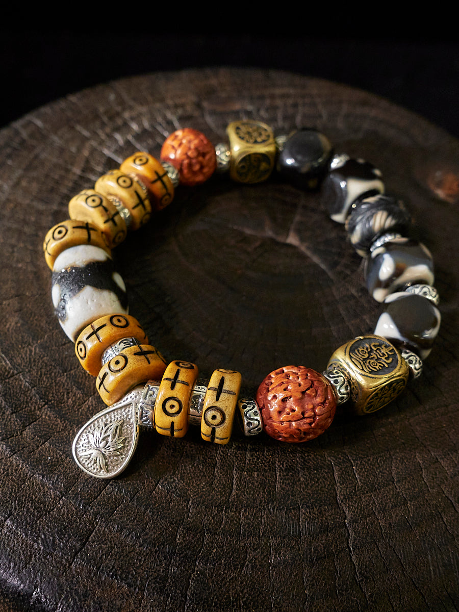 EastKarma GUARDIAN’S GIFT PROSPERITY & PROTECTION TIBETAN DZI BEAD BRACELET