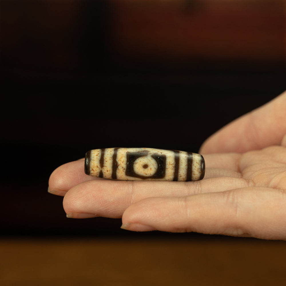 EastKarma THREE-EYE ANCIENT DZI BEAD NECKLACE FOR PROTECTION AND PROSPERITY