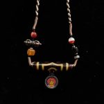 EastKarma YELLOW JAMBHALA THREE-EYED DZI & AGATE THANGKA NECKLACE