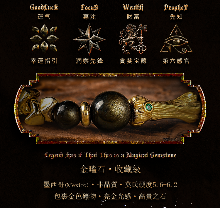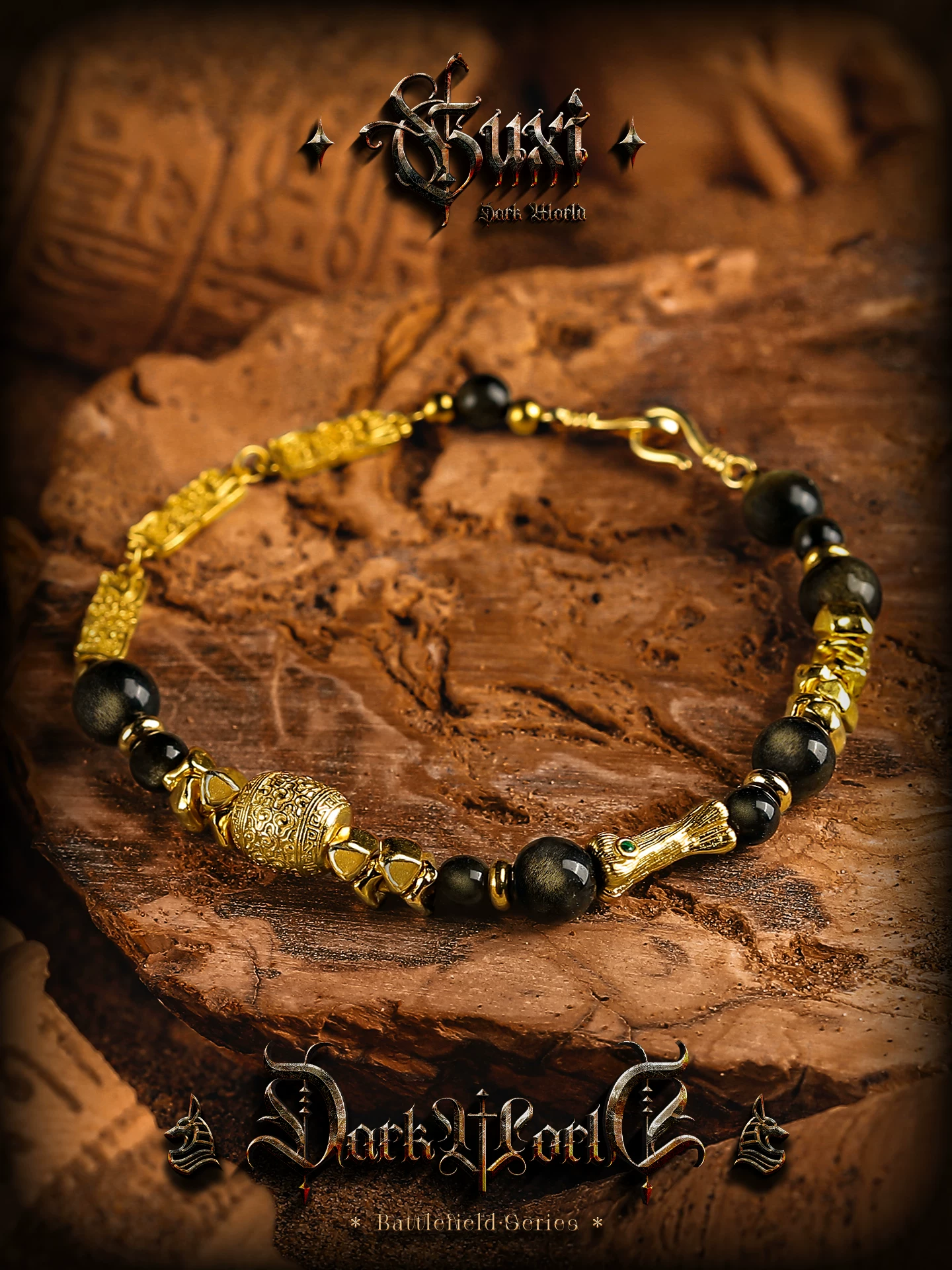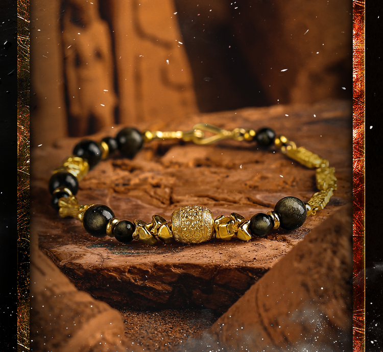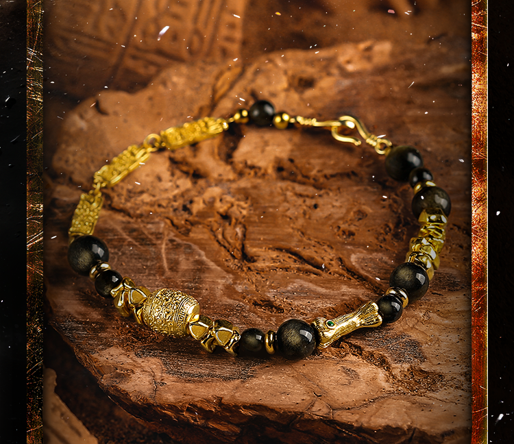 GUXI【九霄】小众设计金黑曜石手链男手串个性复古送男友生日礼物