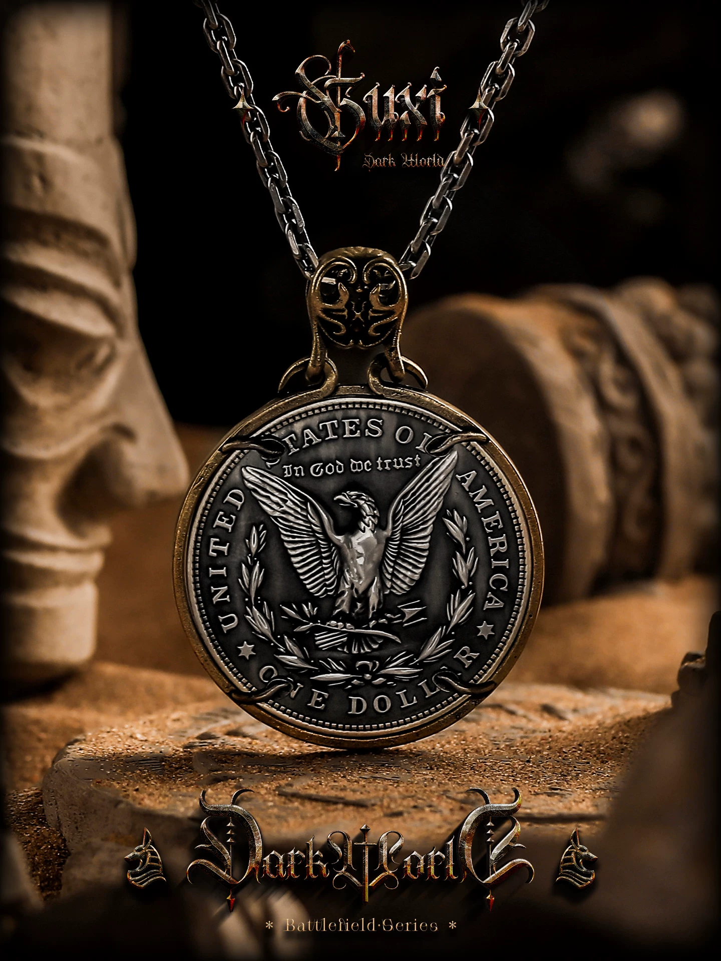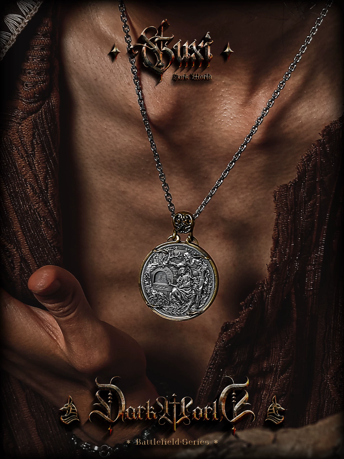 s925银太角链+银吊坠, 钛钢太角链+银吊坠