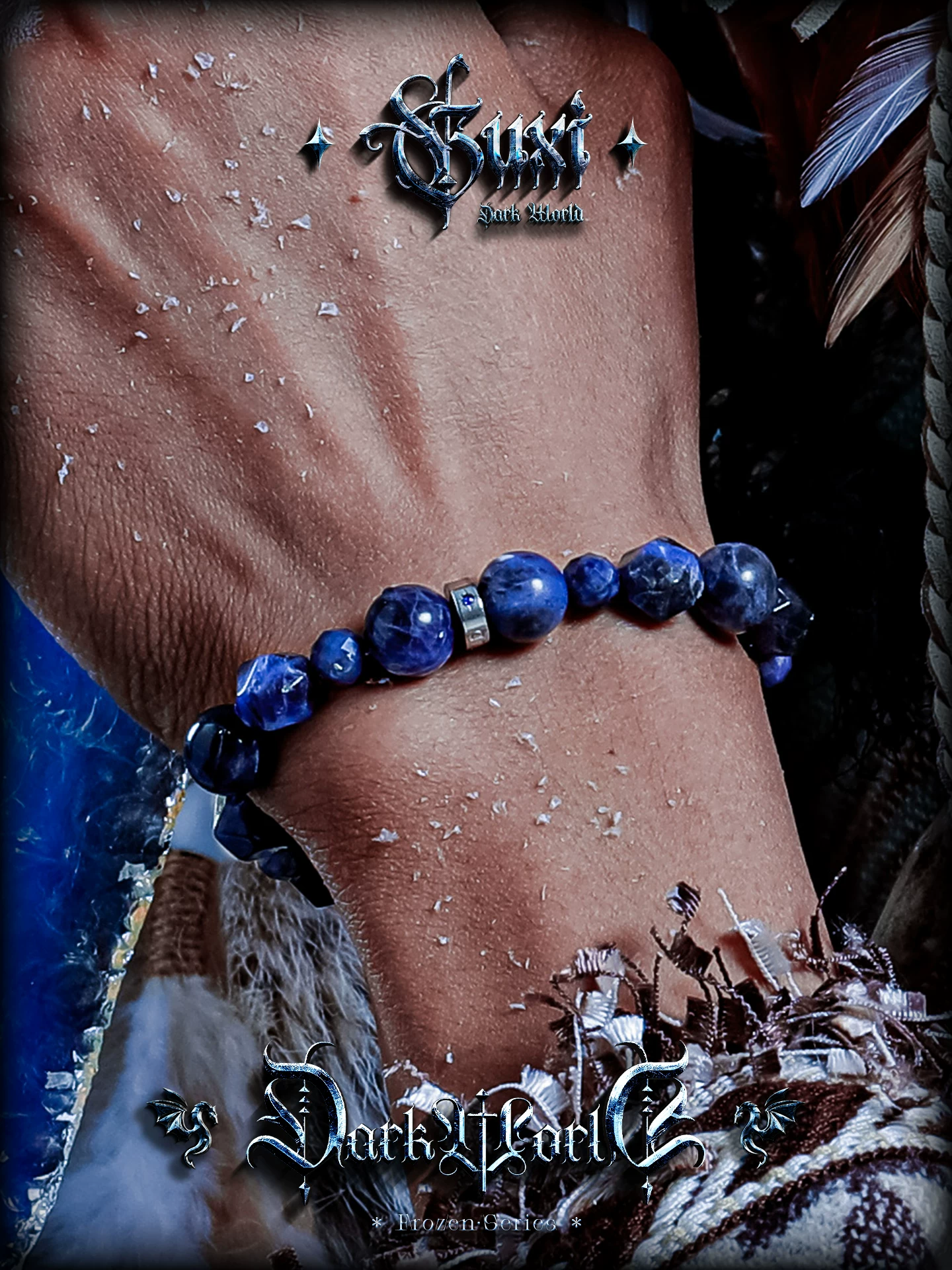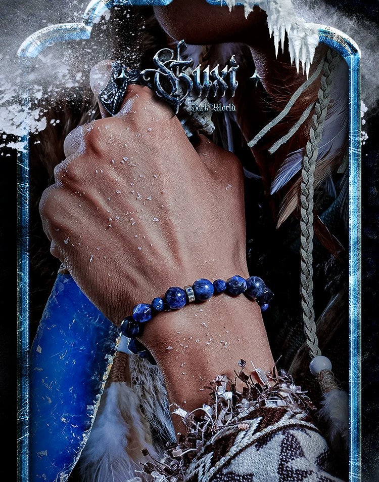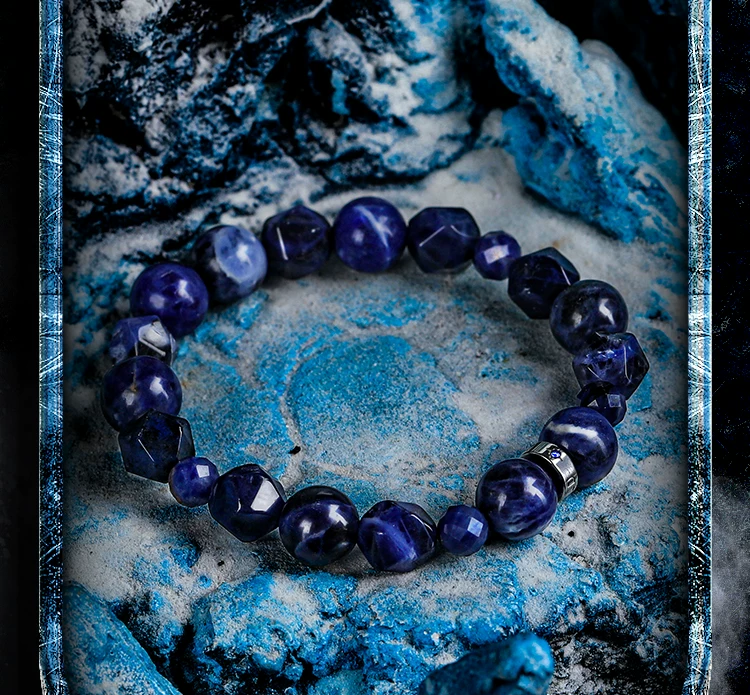 GUXI【冰锋】原创设计天然蓝纹石手链男珠子手串复古时尚百搭饰品