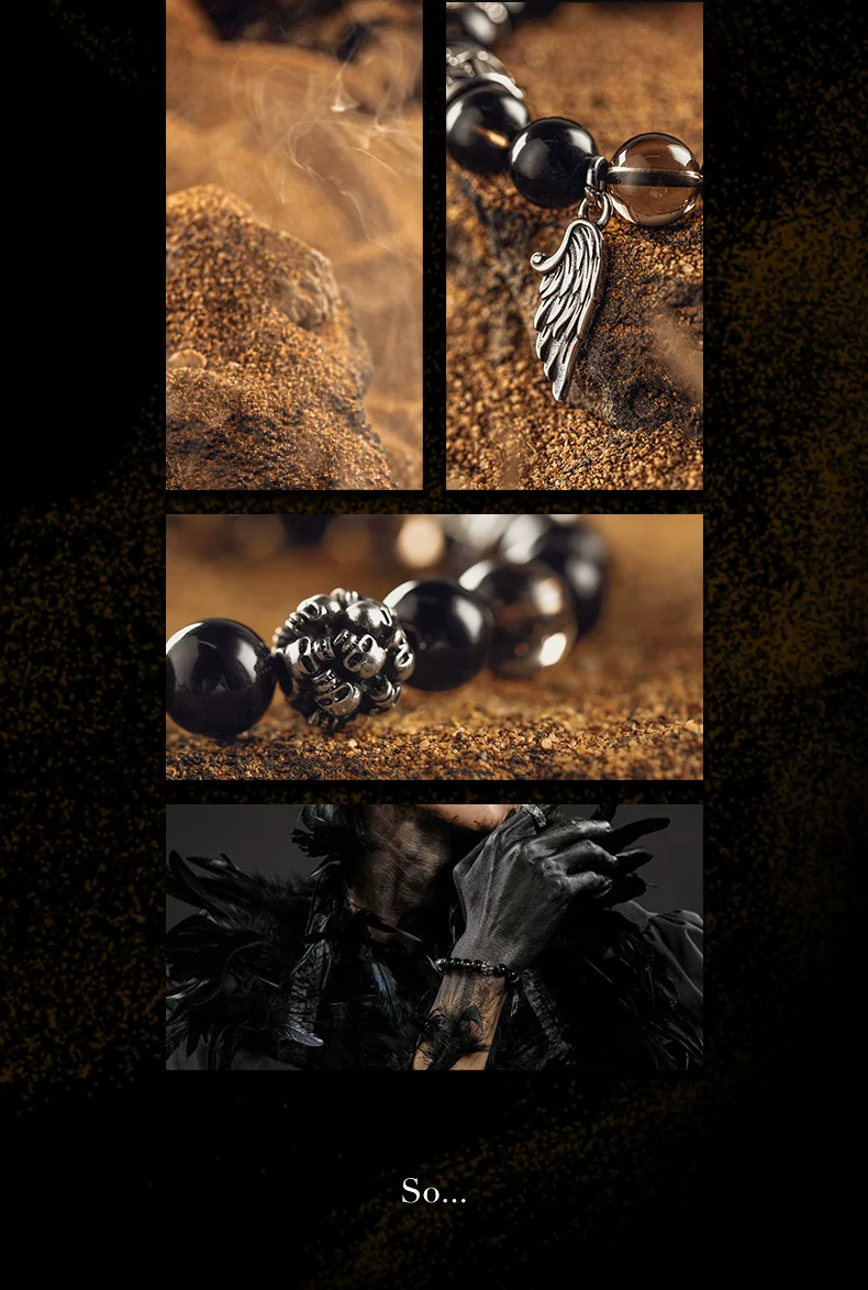 GUXI【堕天使】原创小众黑曜石手链男高级感水晶珠子手串饰品简约