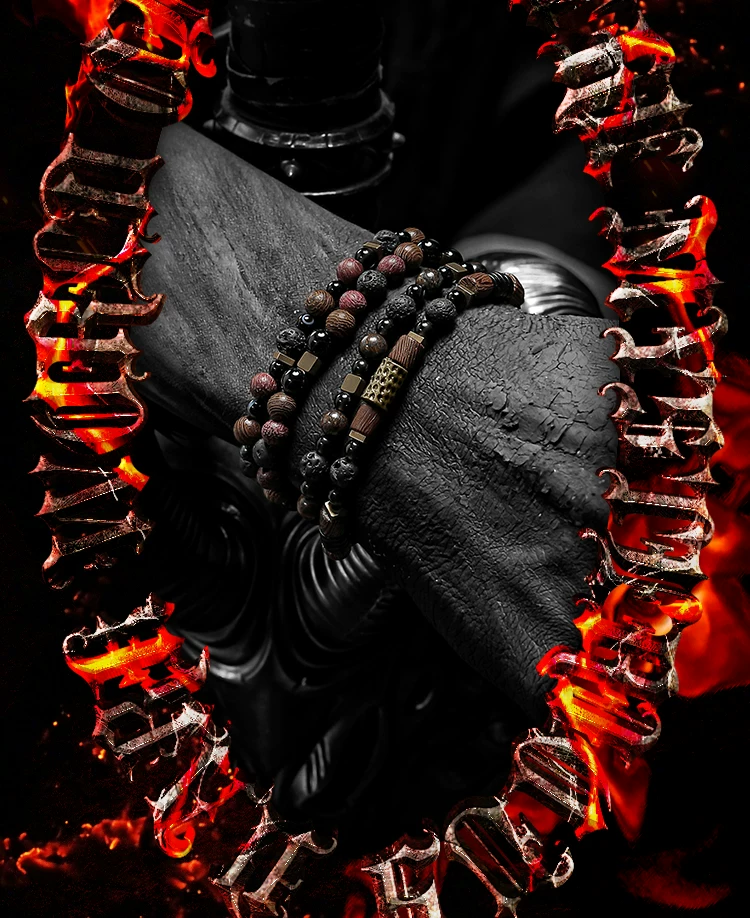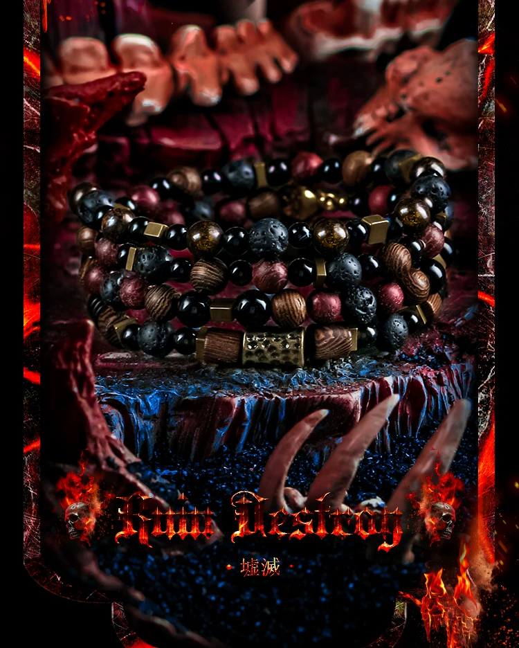 GUXI【墟灭】小众黑曜石手链男高级感复古火山石手串珠子饰品叠戴