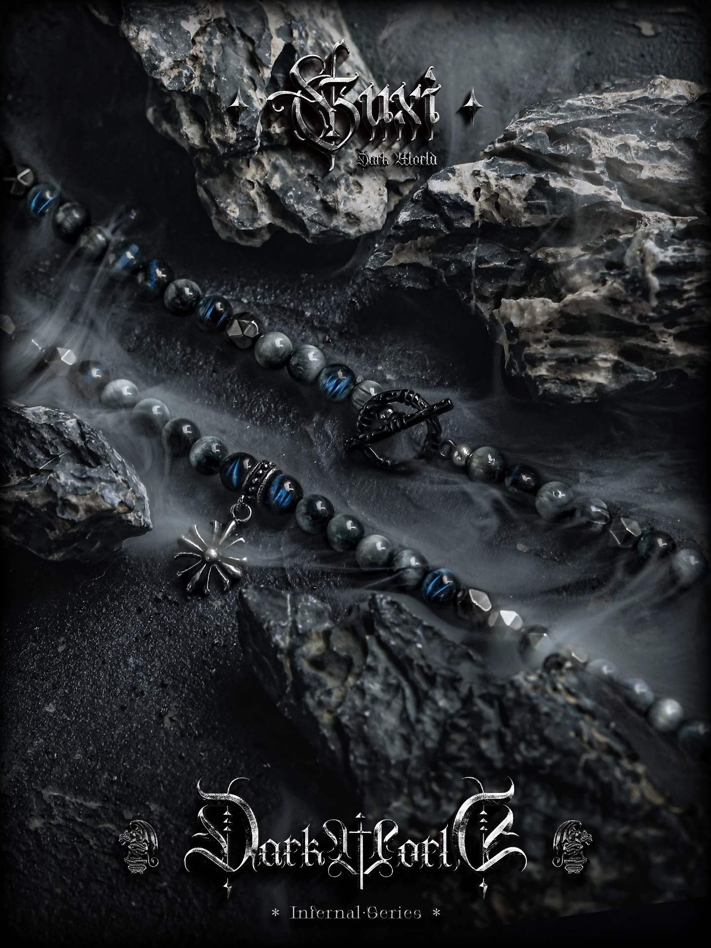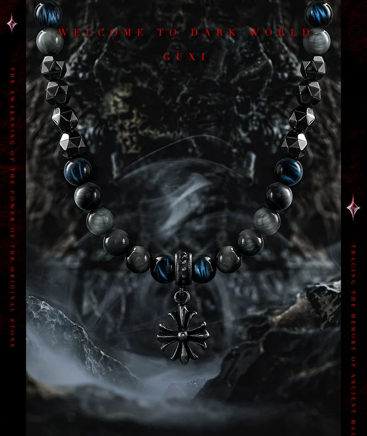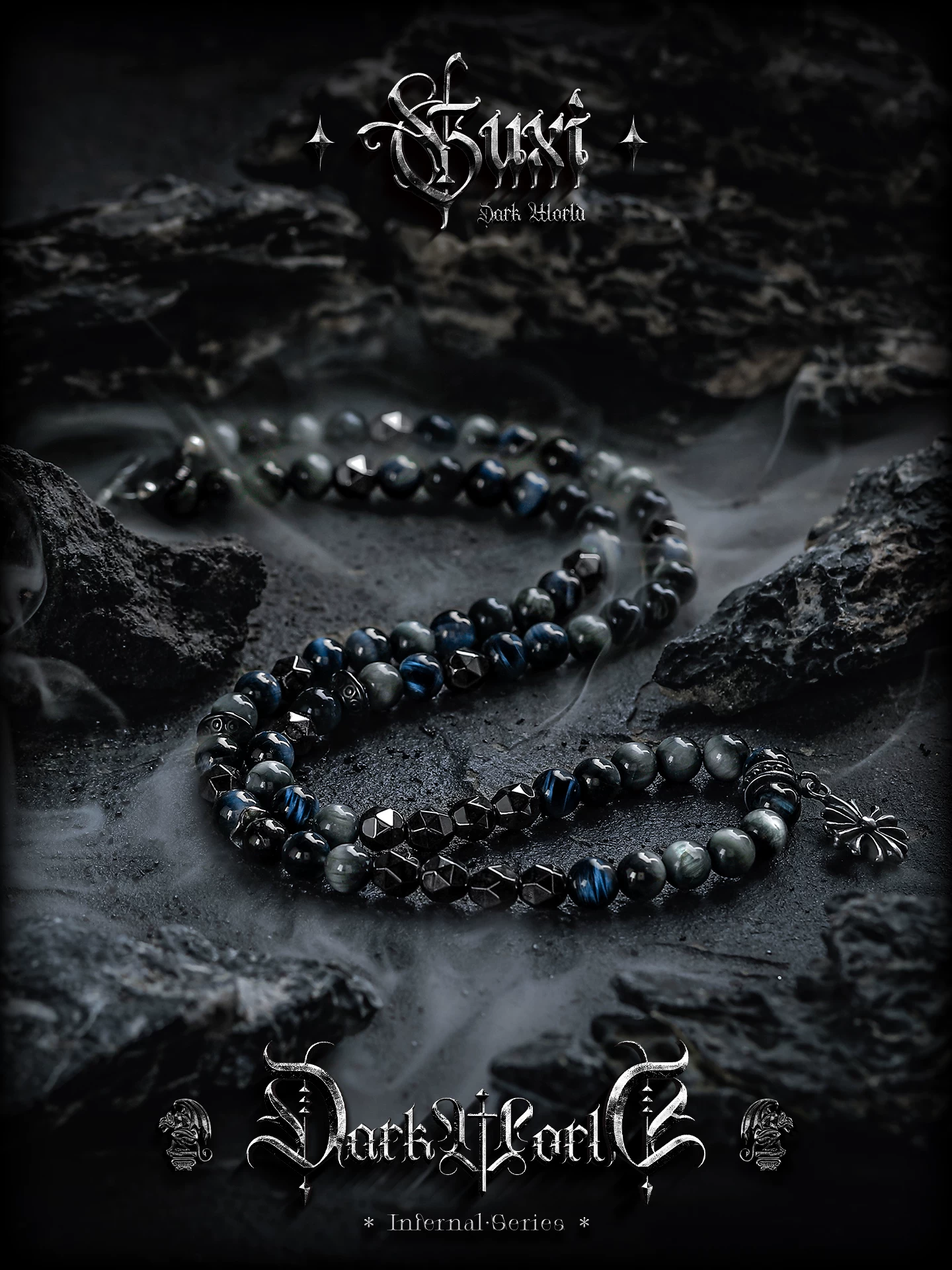GUXI【夜宴】小众暗黑风蓝虎眼石串珠项链男毛衣链鹰眼石复古饰品