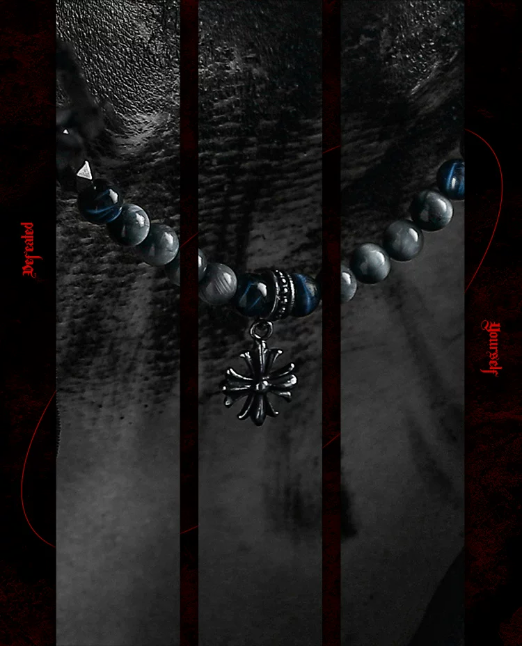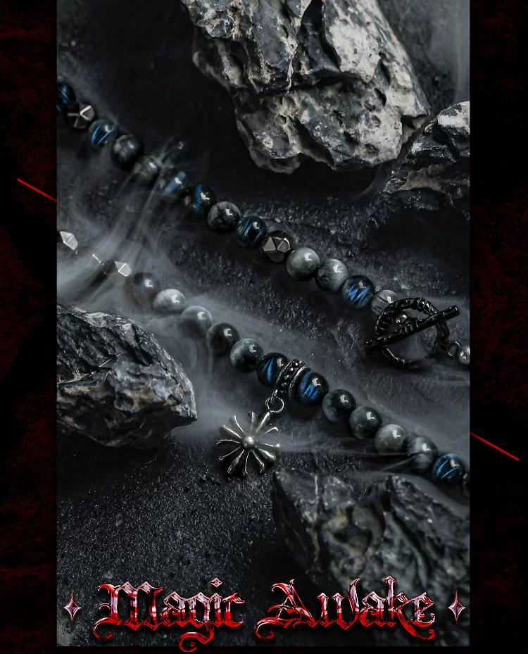 是第一个审查"GUXI【夜宴】小众暗黑风蓝虎眼石串珠项链男毛衣链鹰眼石复古饰品"