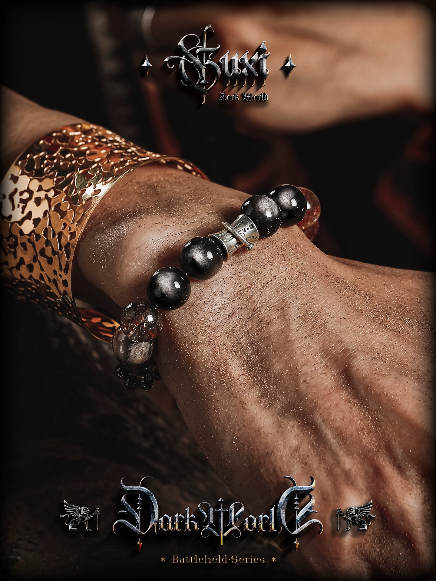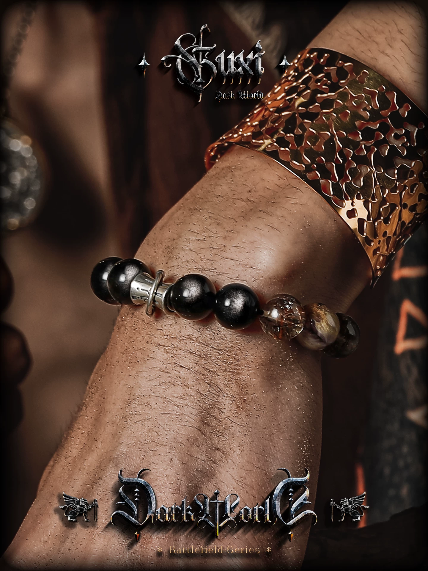 是第一个审查"GUXI【天启】复古银黑曜石手链男高级感黑金超七水晶手串轻奢饰品"