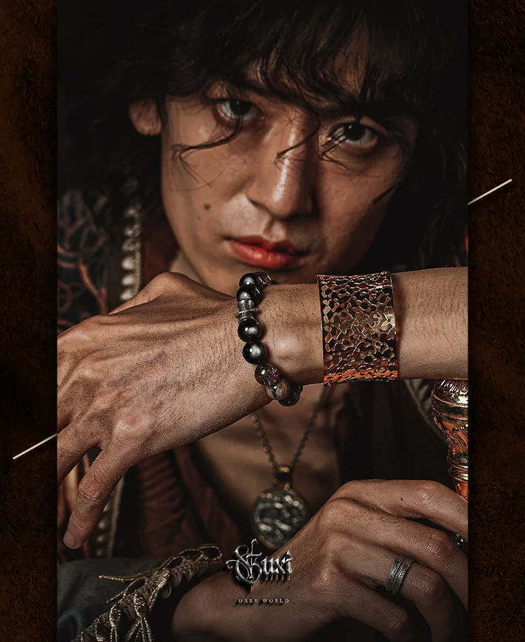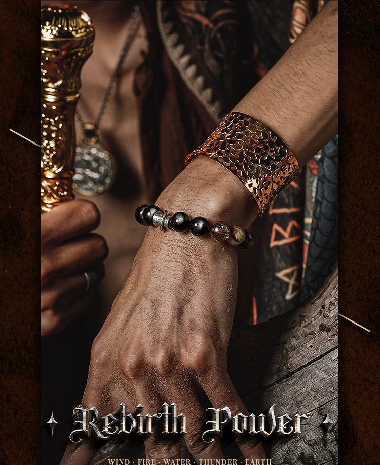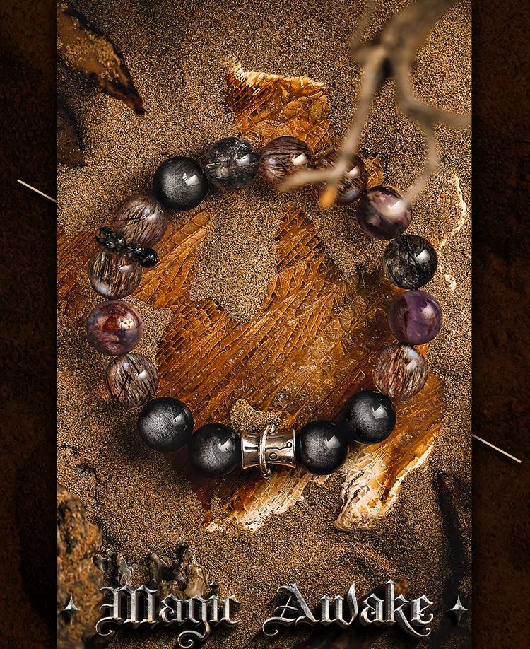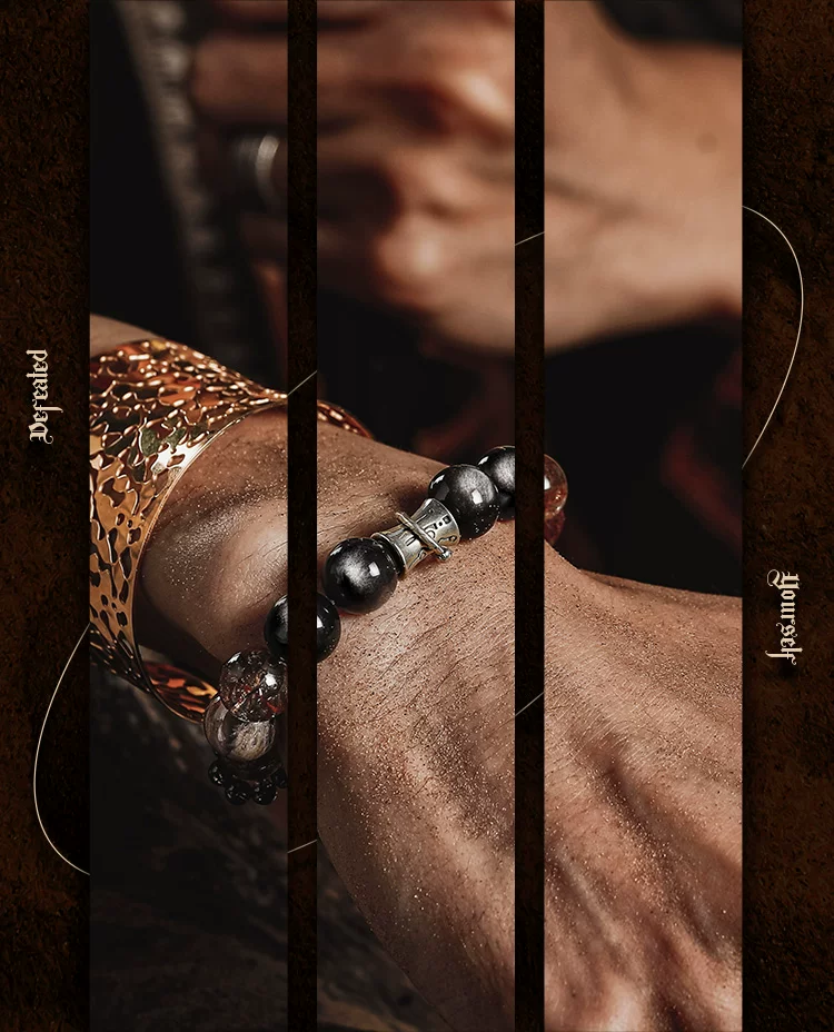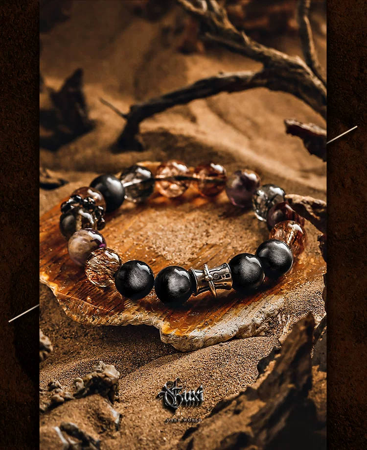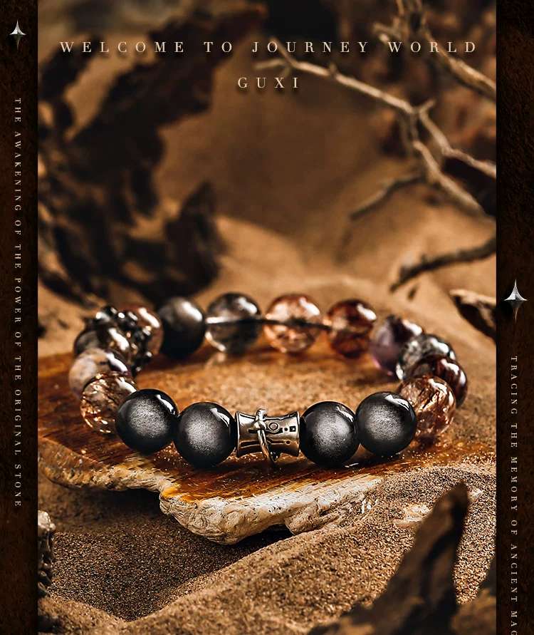 GUXI【天启】复古银黑曜石手链男高级感黑金超七水晶手串轻奢饰品