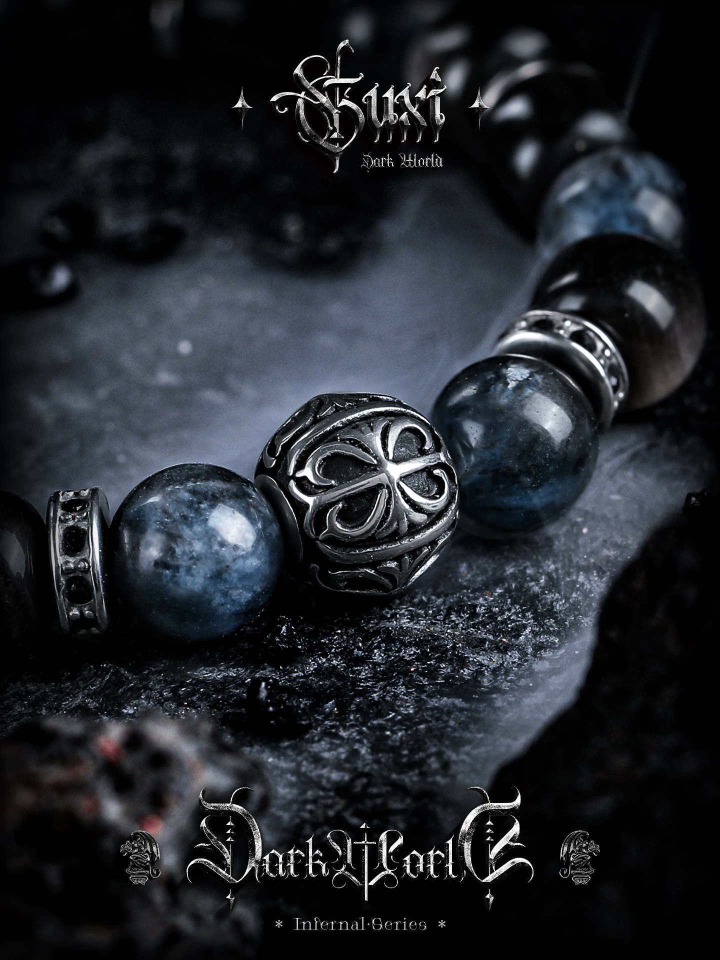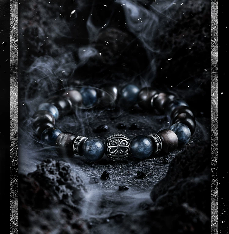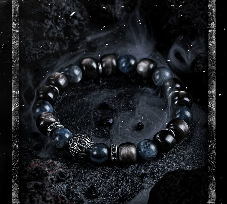 GUXI【孤迹】银黑曜石手链男魔鬼蓝海蓝宝手串复古送男友生日礼物