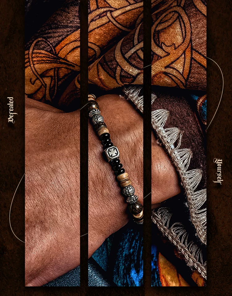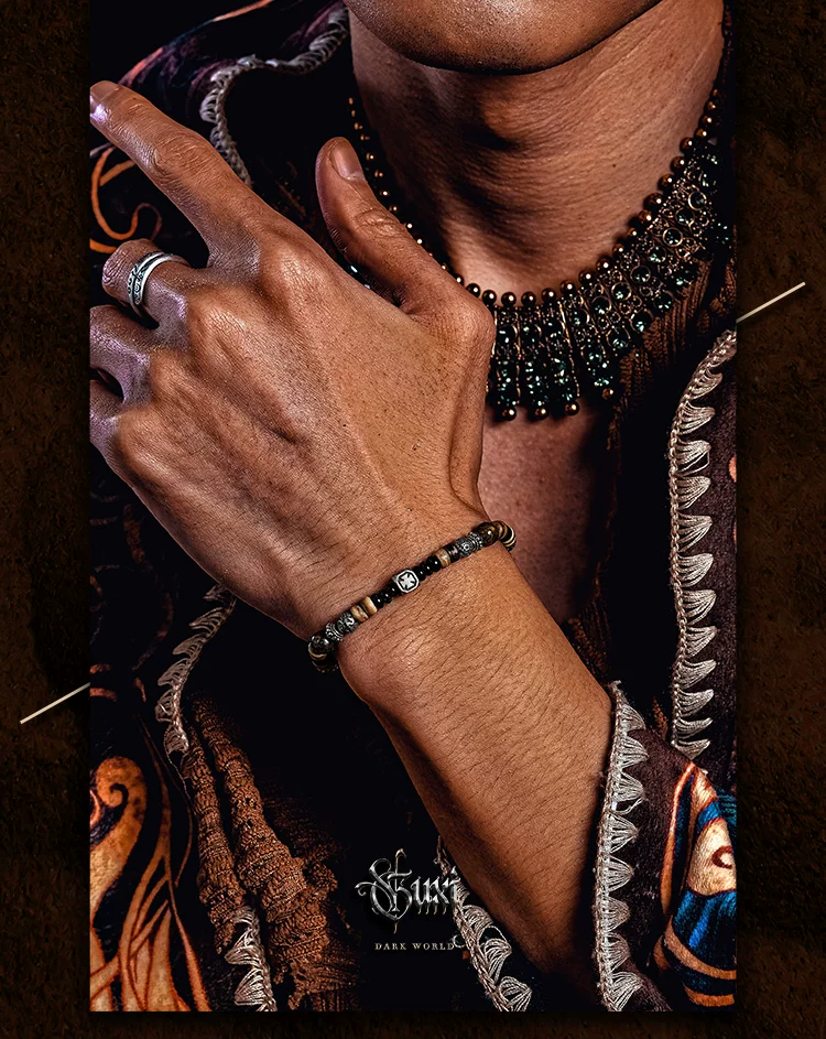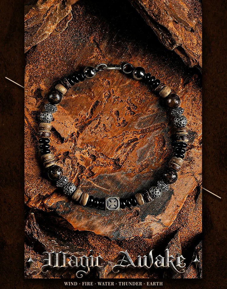 GUXI【尘沙】小众设计黑玛瑙手链男复古棕椰壳手串珠时尚简约饰品