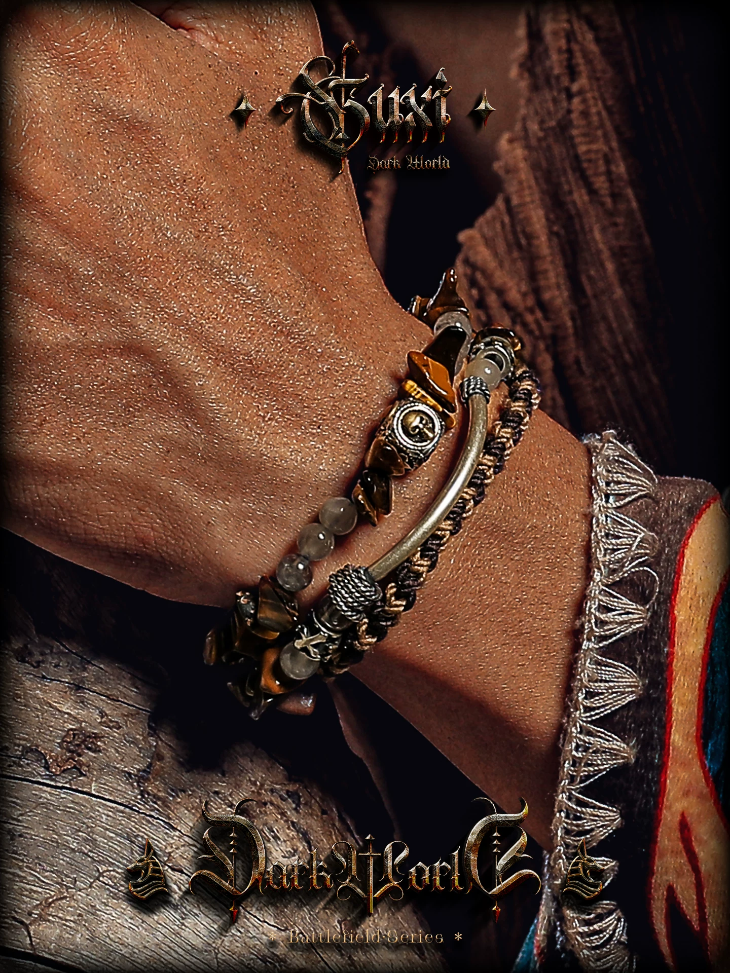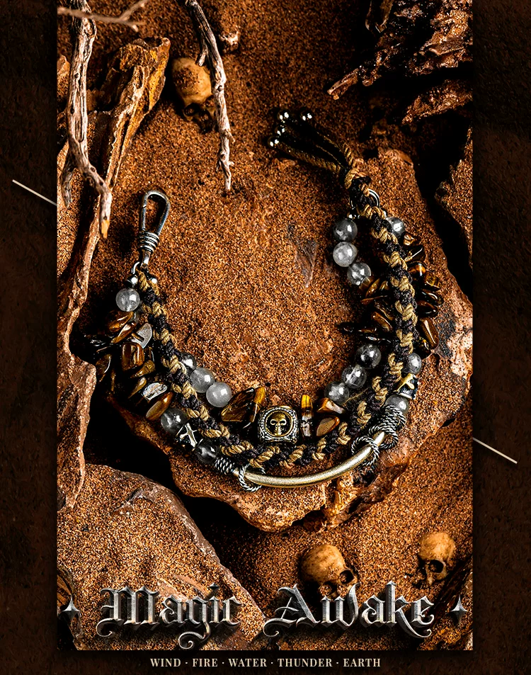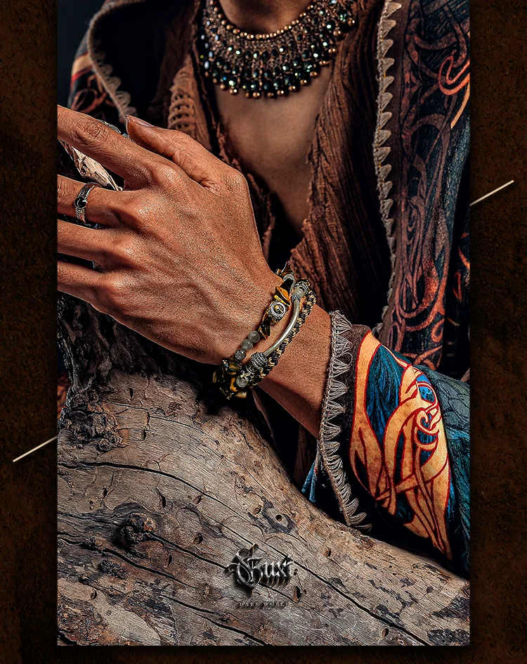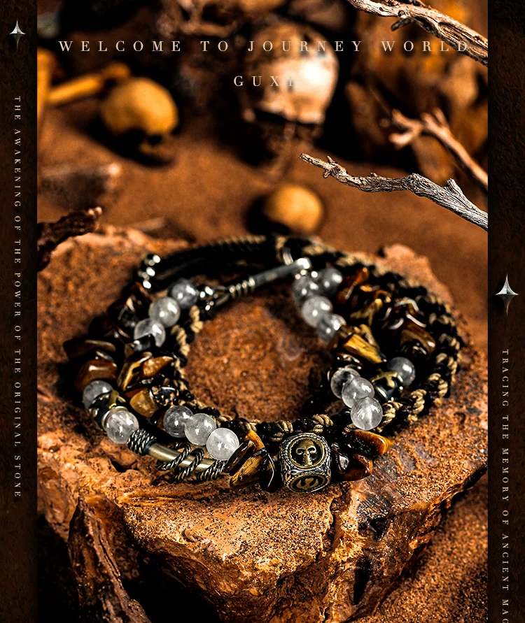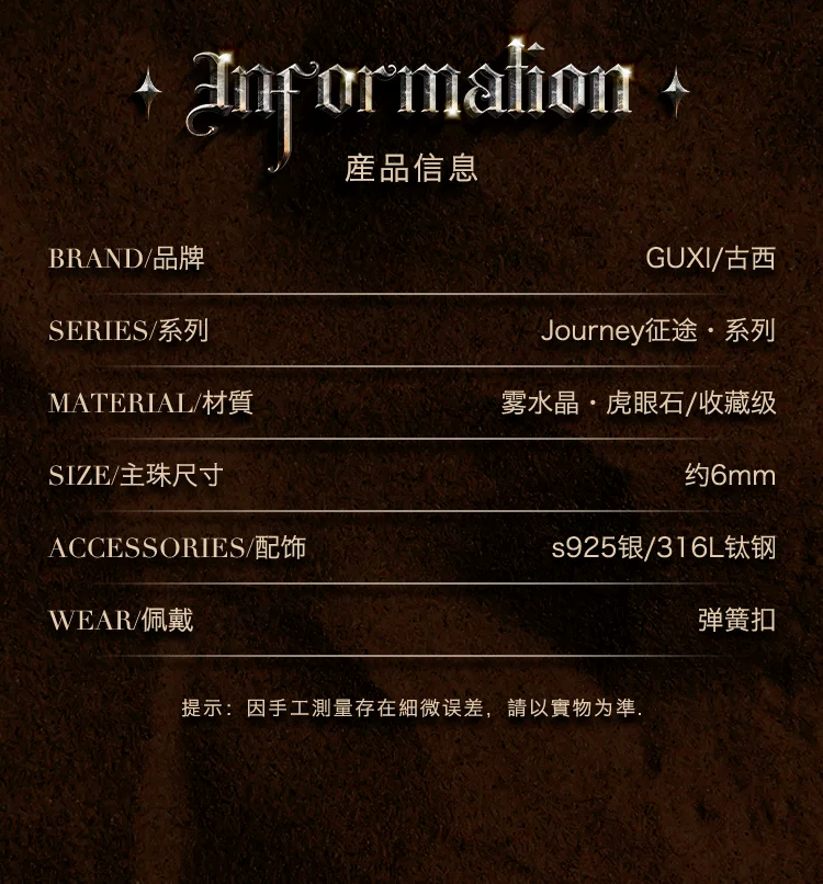GUXI【尘羿】原创设计虎眼石手链男雾水晶手串珠复古手绳叠戴个性