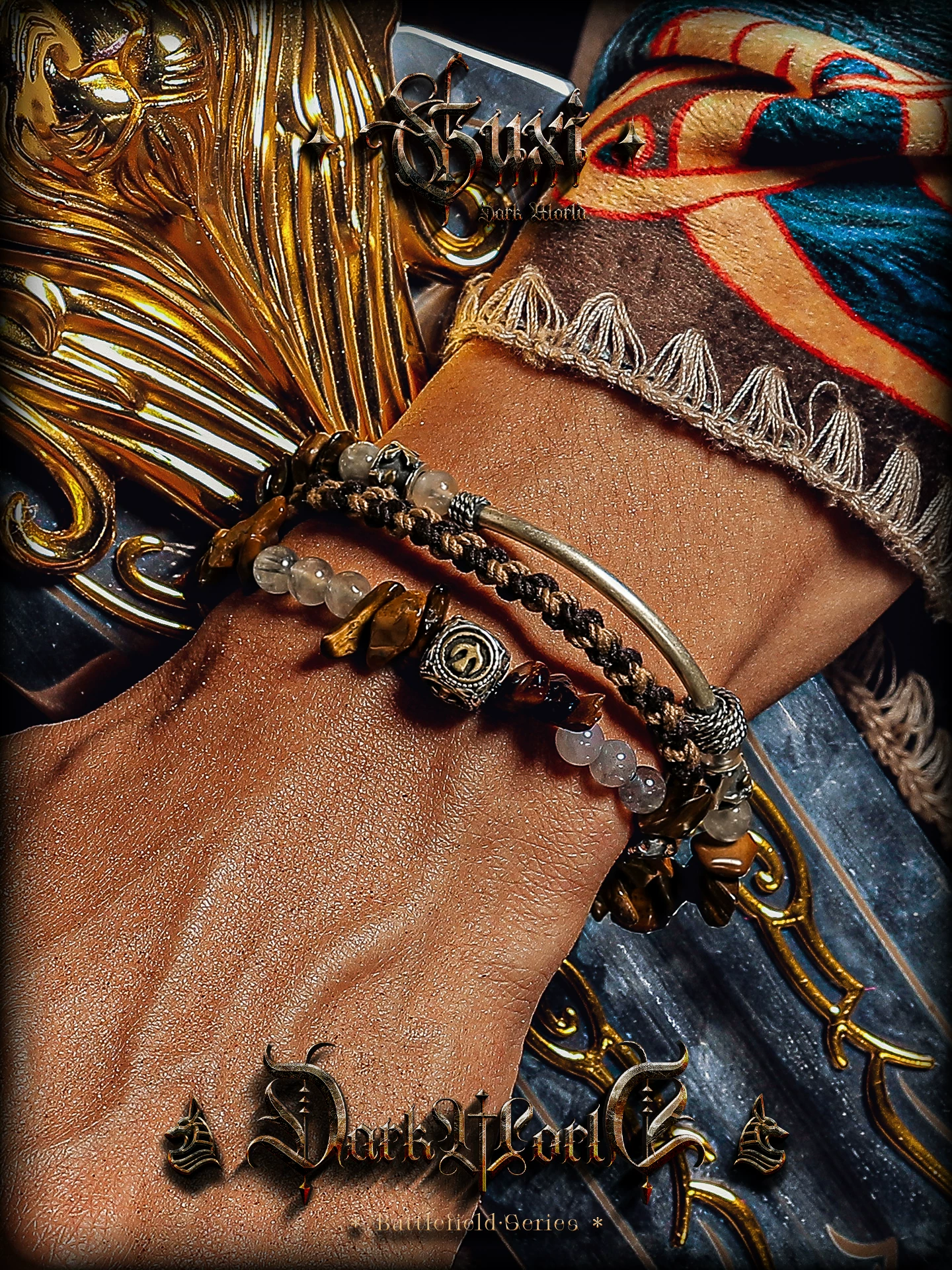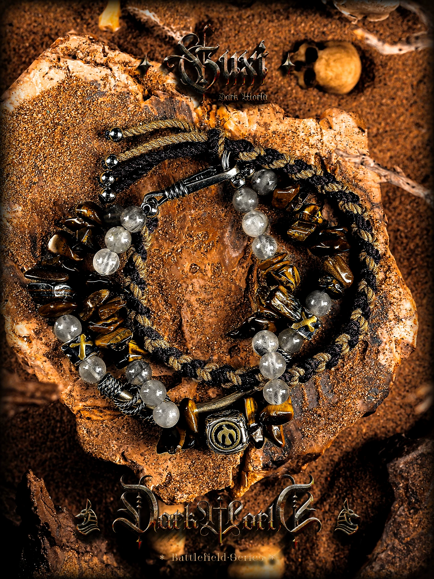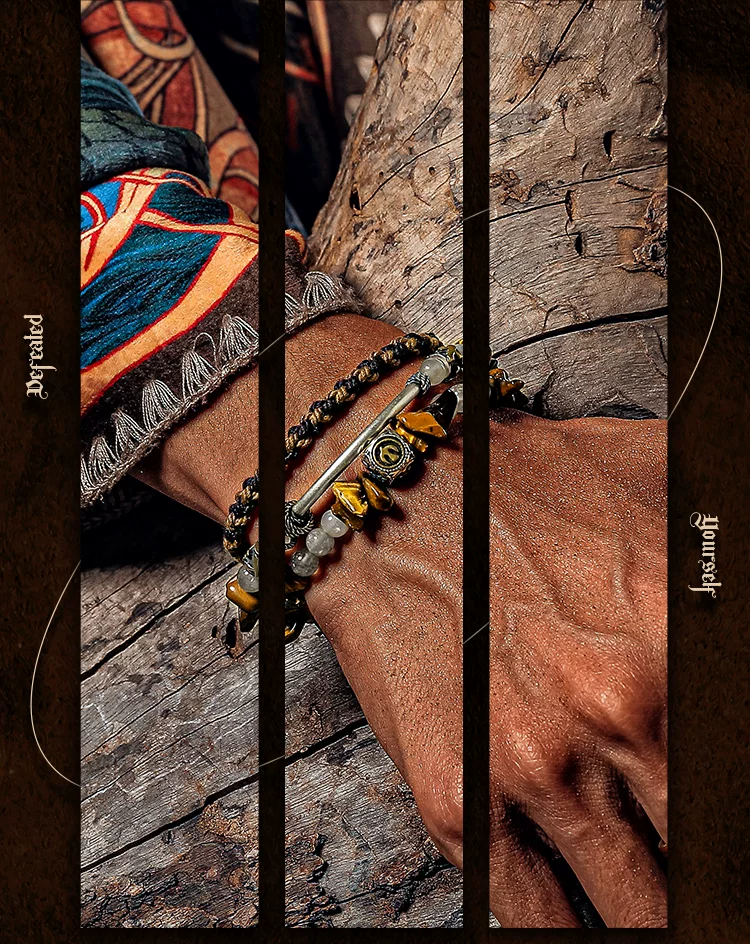 GUXI【尘羿】原创设计虎眼石手链男雾水晶手串珠复古手绳叠戴个性