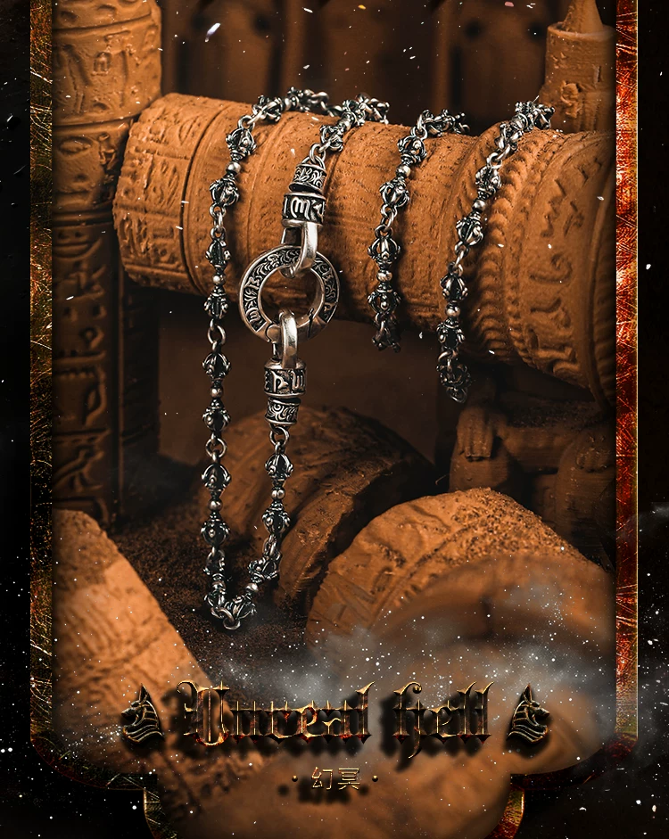 GUXI【幻冥】复古925银六字真言项链男小众金刚杵饰品送男友礼物