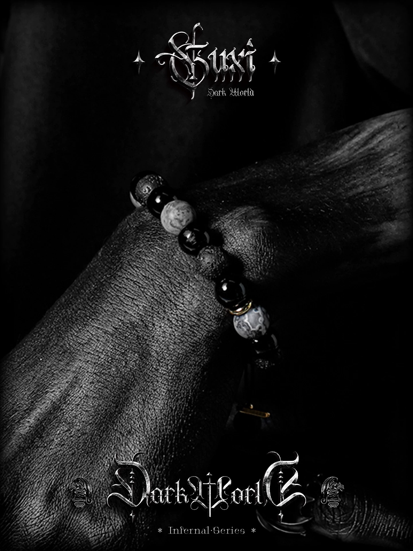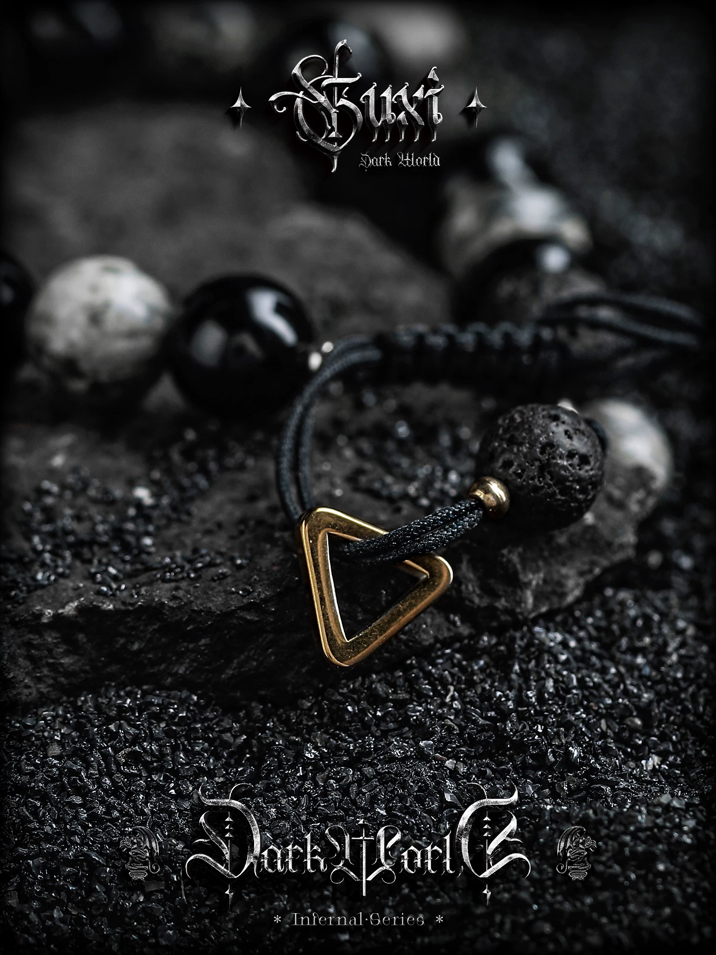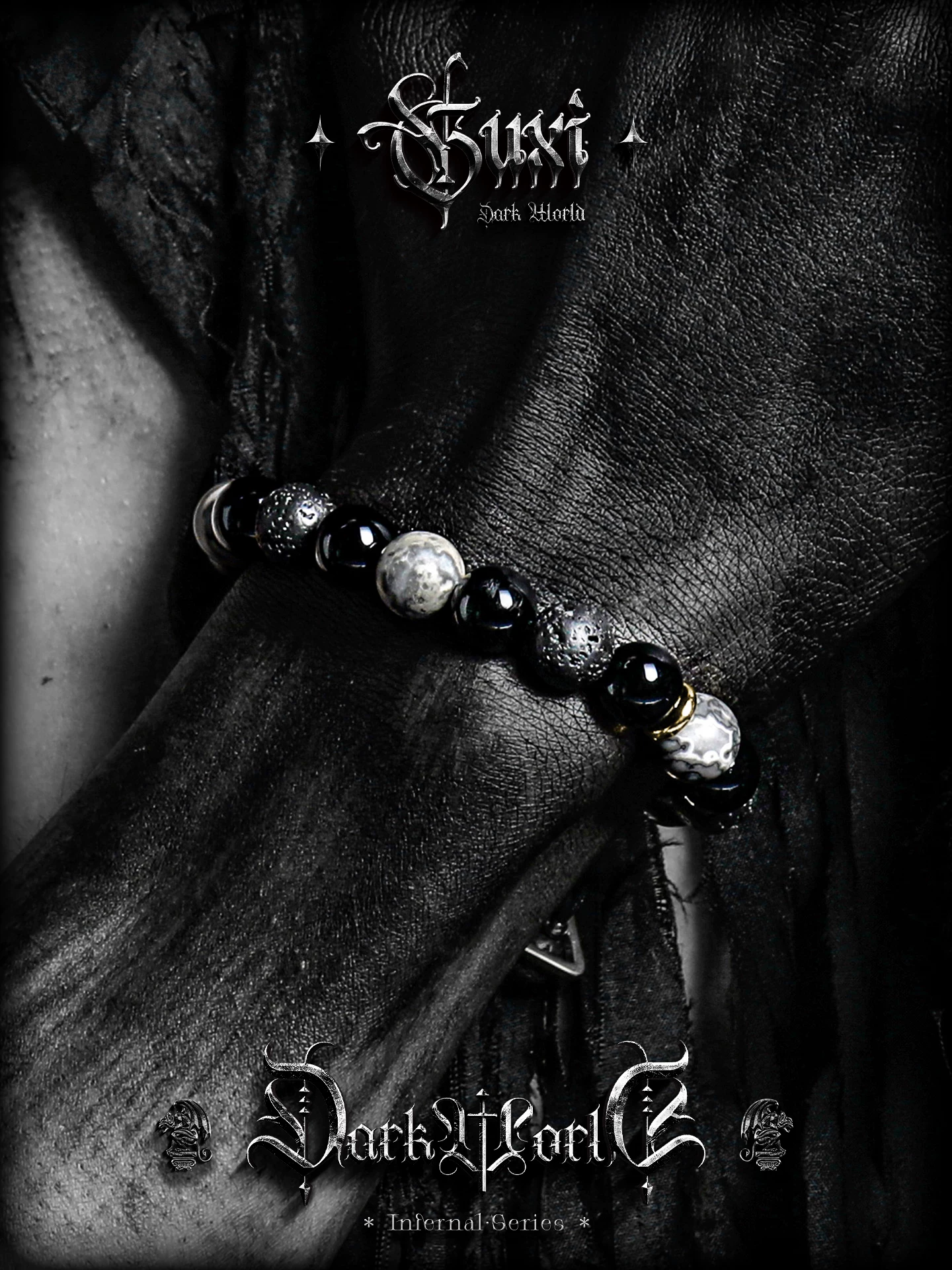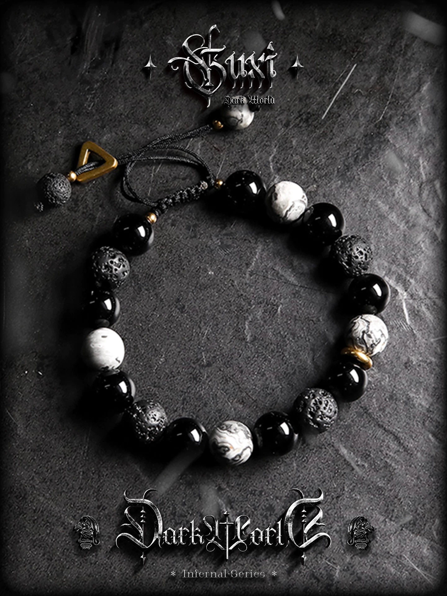 GUXI【幻夜】暗黑复古黑曜石手链男生小众火山石手串生日礼物饰品