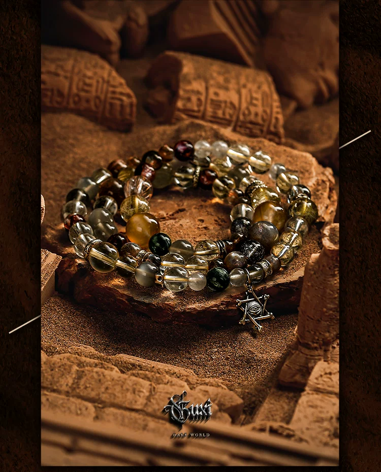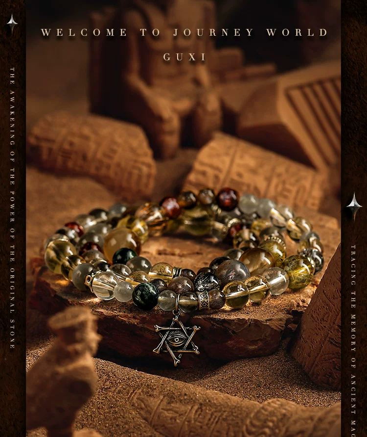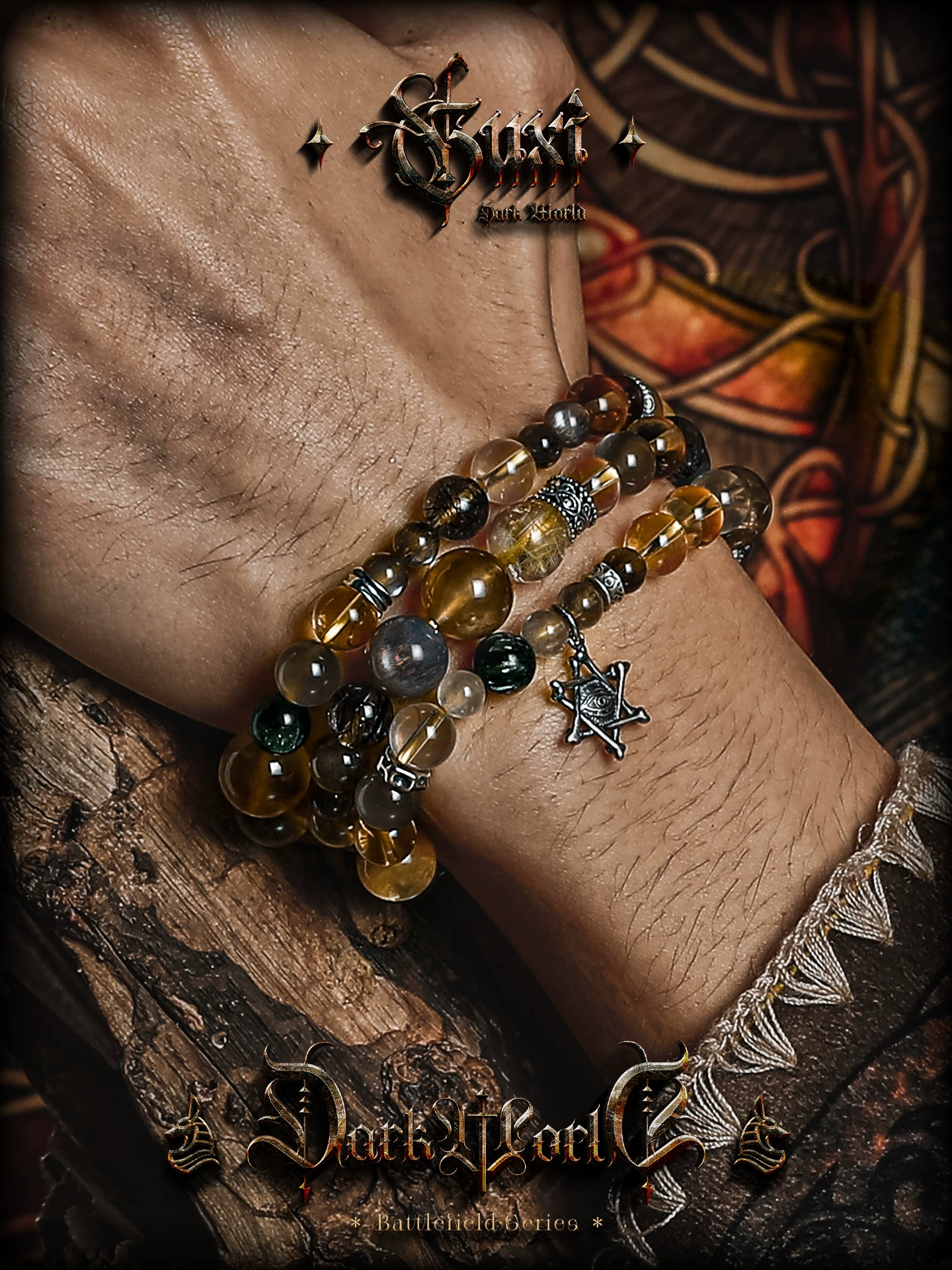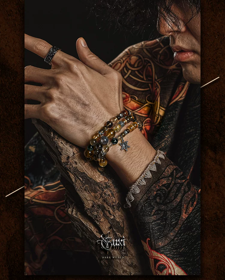 GUXI【幽煌】小众金发晶手链男生高级感黑太阳石手串珠子水晶饰品
