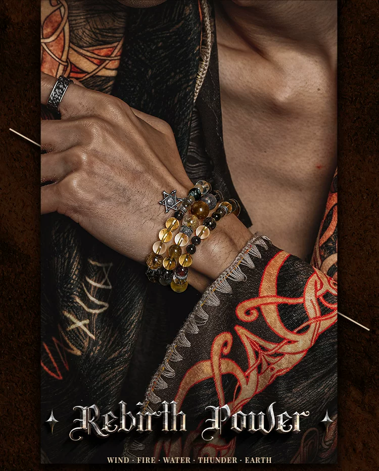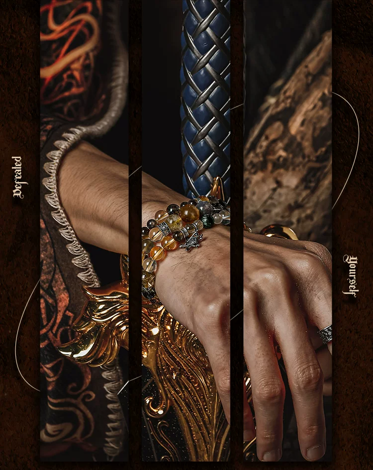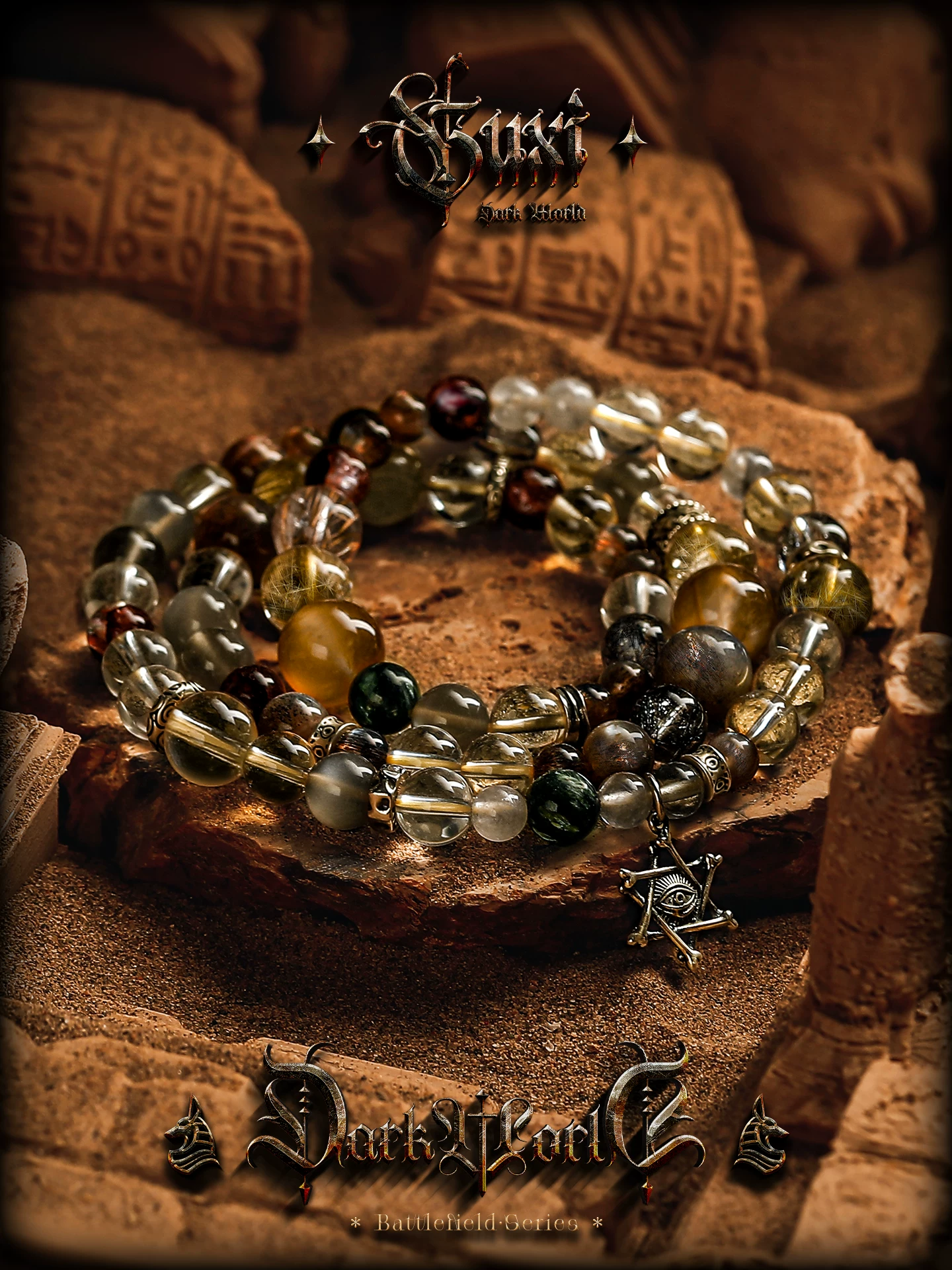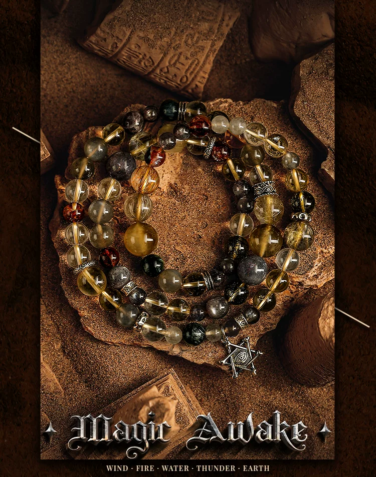 GUXI【幽煌】小众金发晶手链男生高级感黑太阳石手串珠子水晶饰品