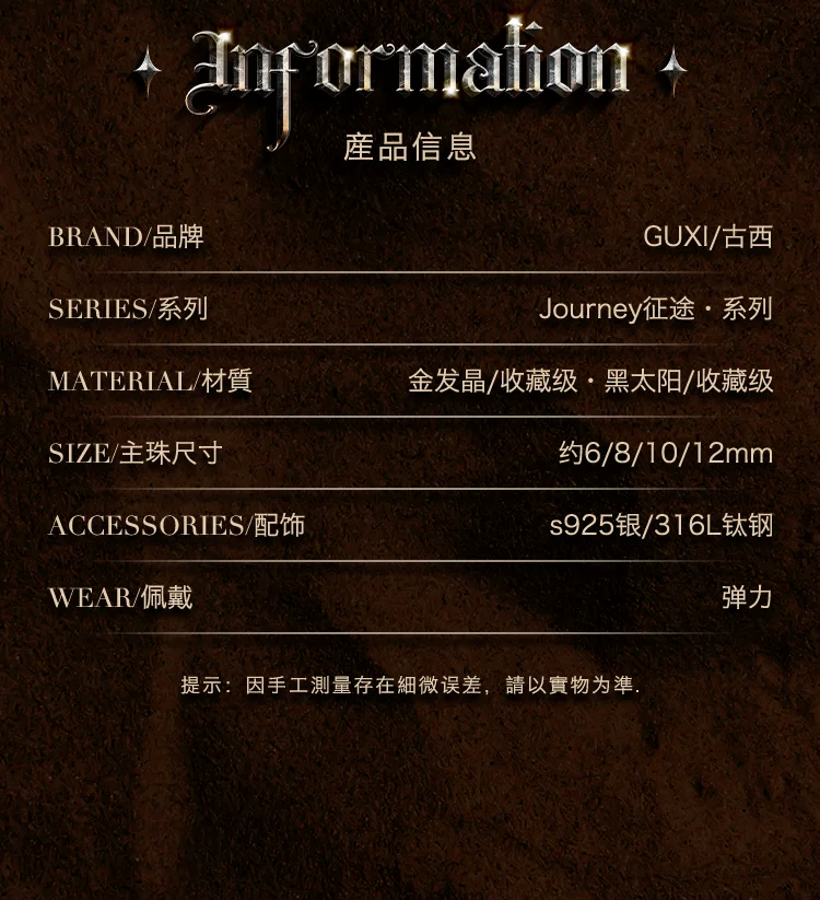 是第一个审查"GUXI【幽煌】小众金发晶手链男生高级感黑太阳石手串珠子水晶饰品"