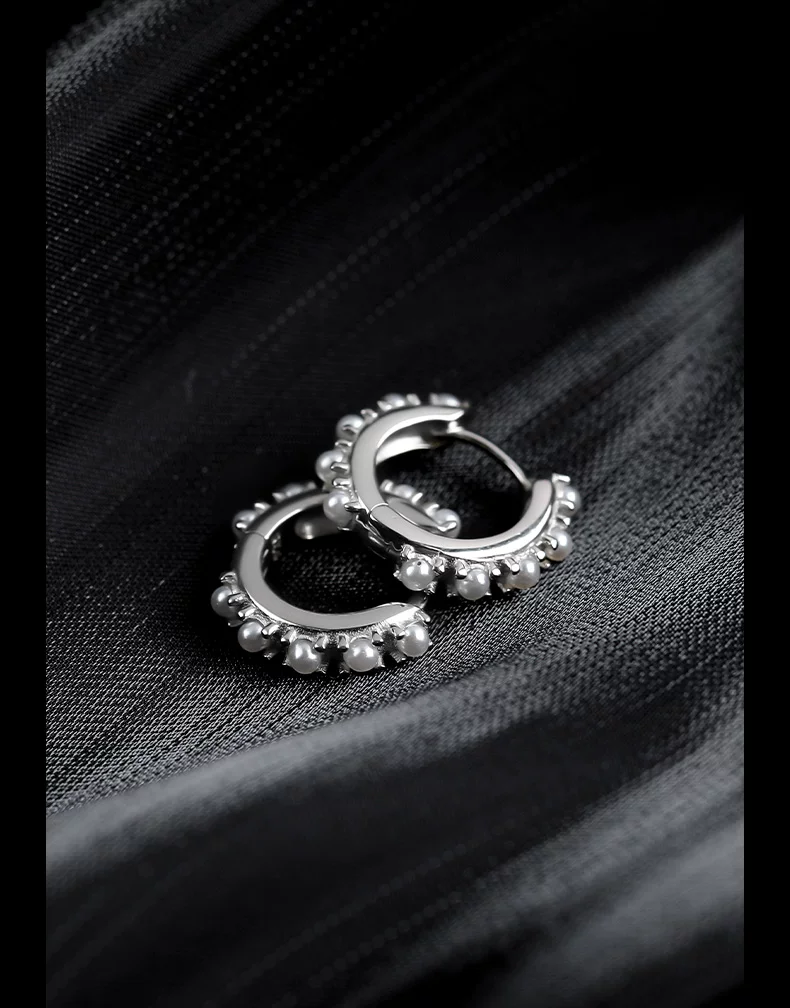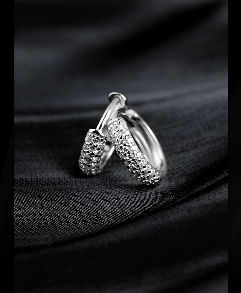 GUXI【弥漫】小众设计感925银耳环男士素圈高级感 白色锆石耳钉女