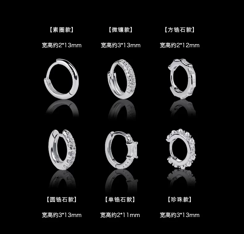 单锆石款(单只), 圆锆石款(单只), 微镶款(单只), 方锆石款(单只), 珍珠款(单只), 素圈款(单只)