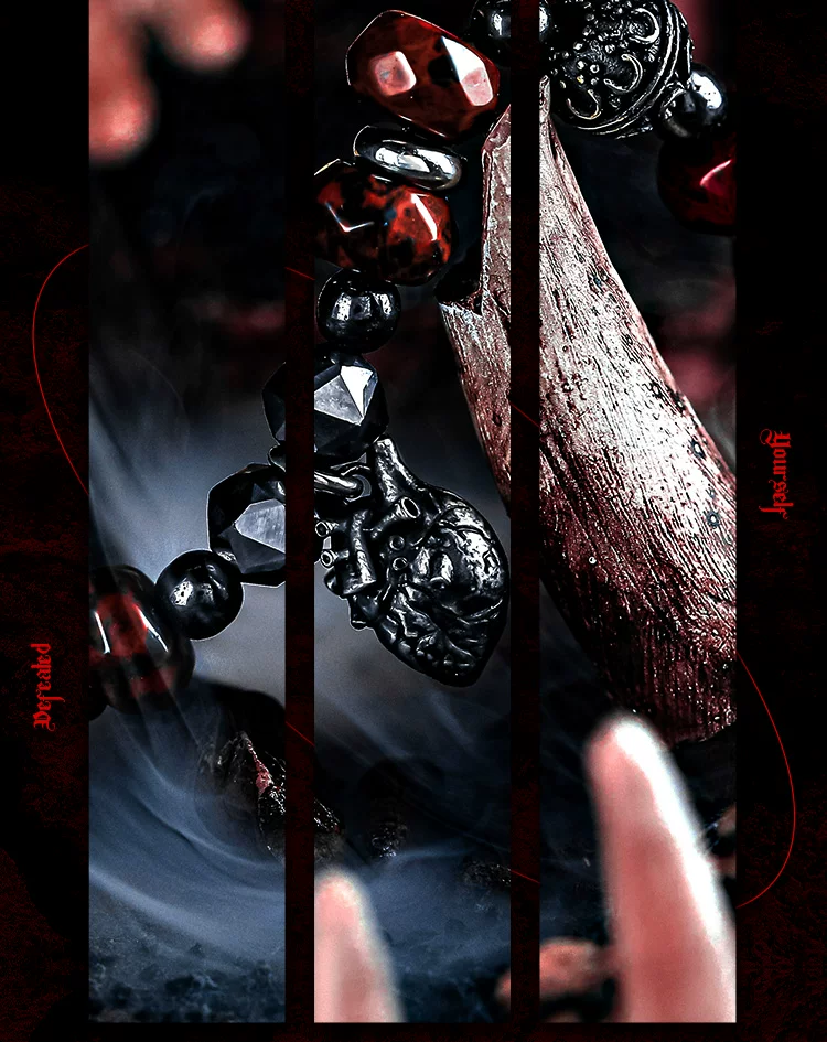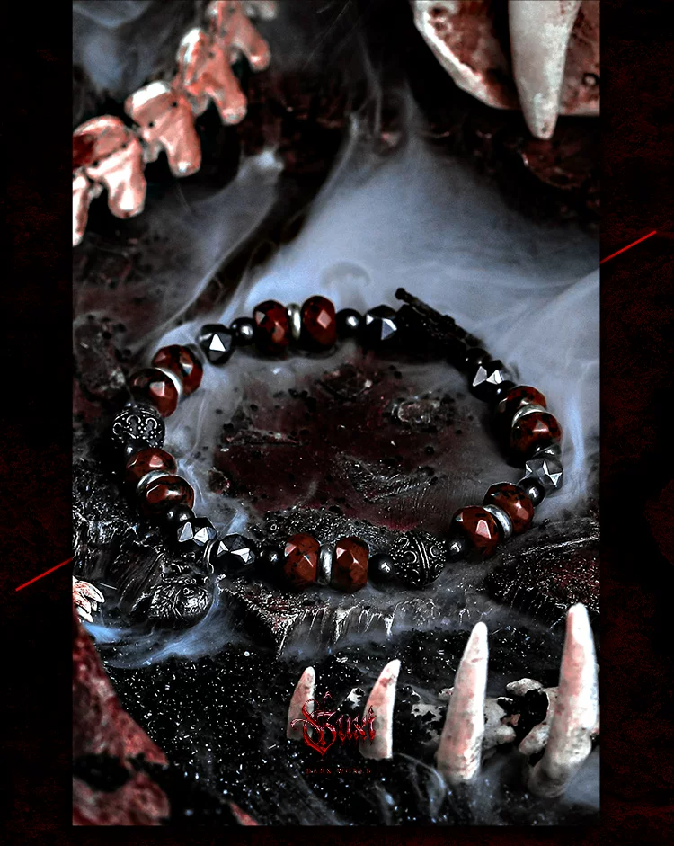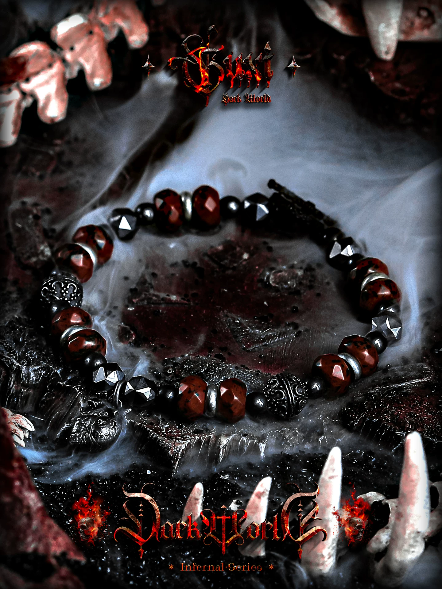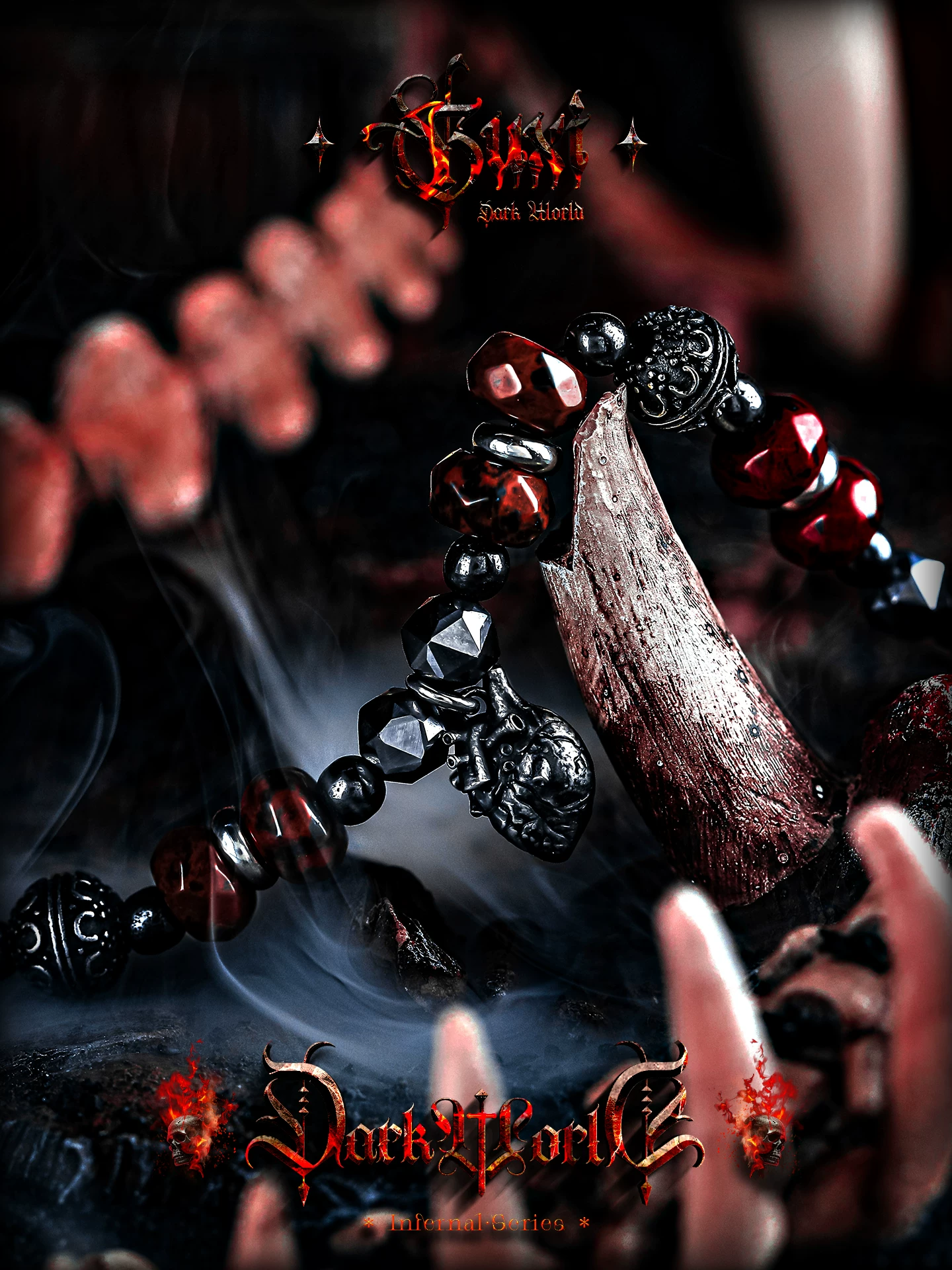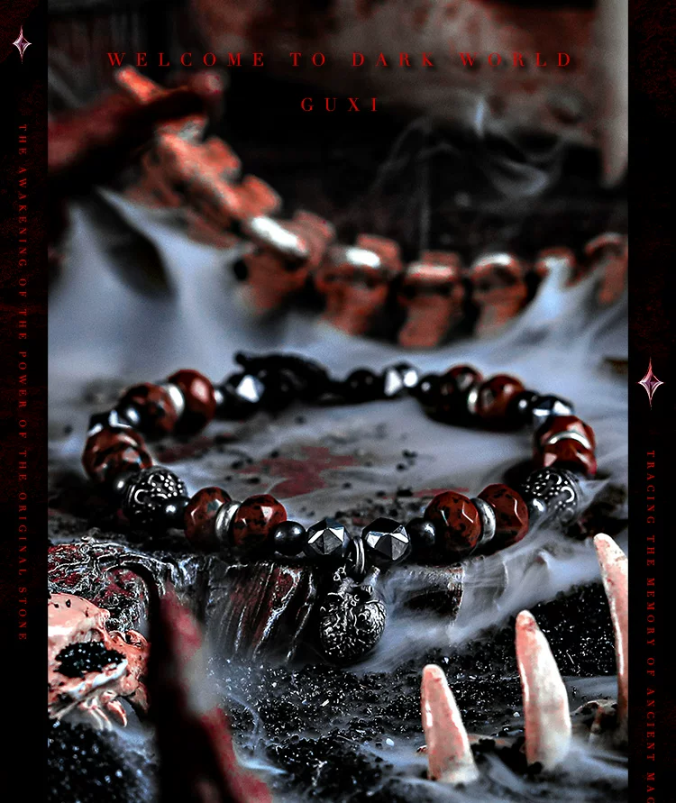 GUXI【恶魔之心】红黑曜石手链男高级感黑胆石手串送男友生日礼物