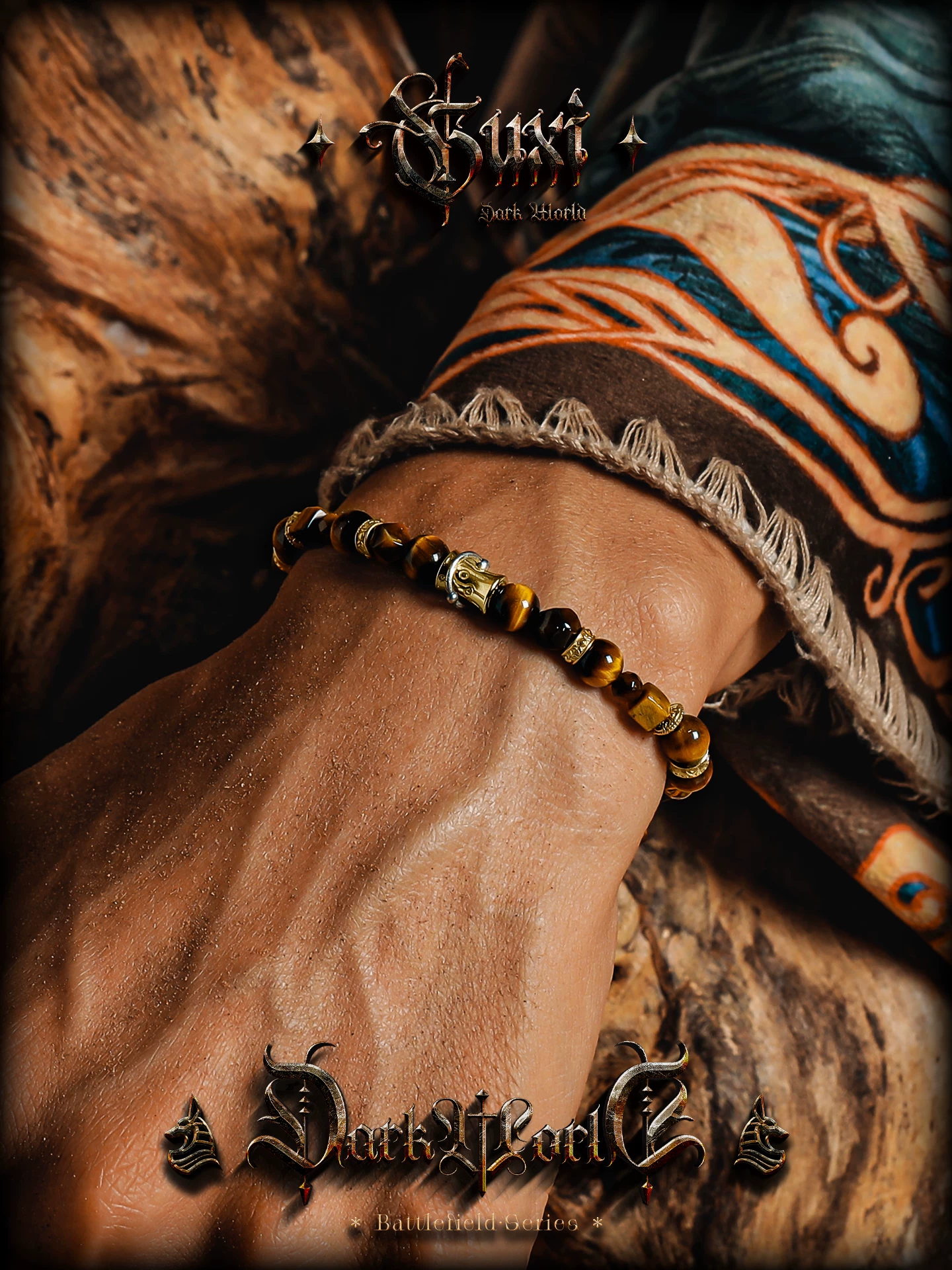 GUXI【戎光】小众设计天然虎眼石手链男高级感手串珠复古生日礼物