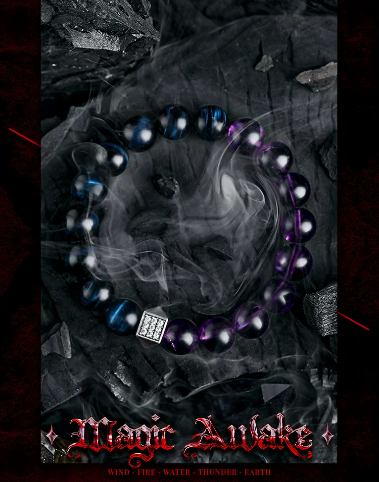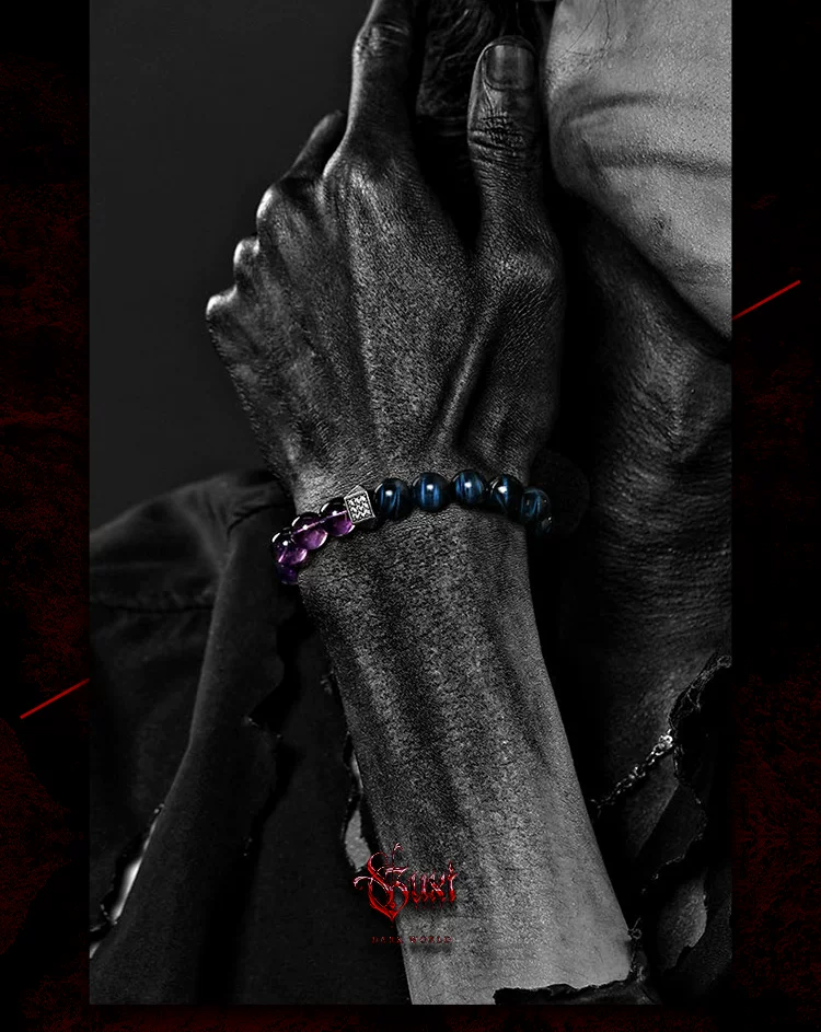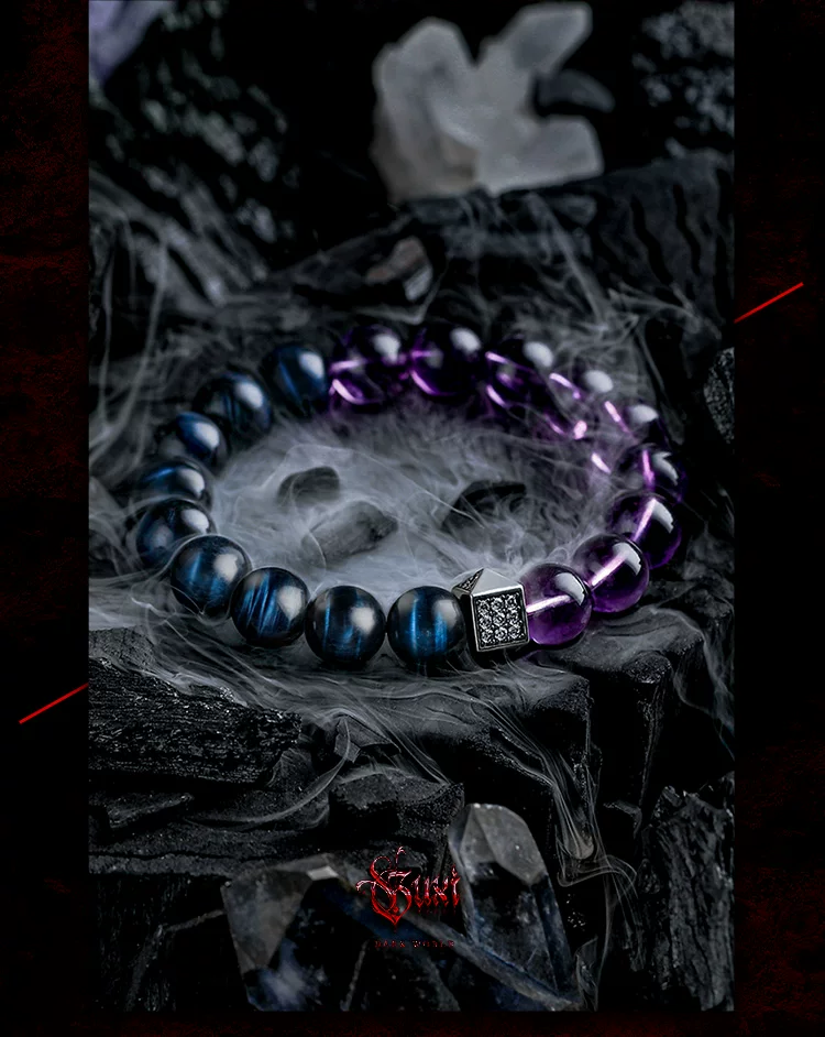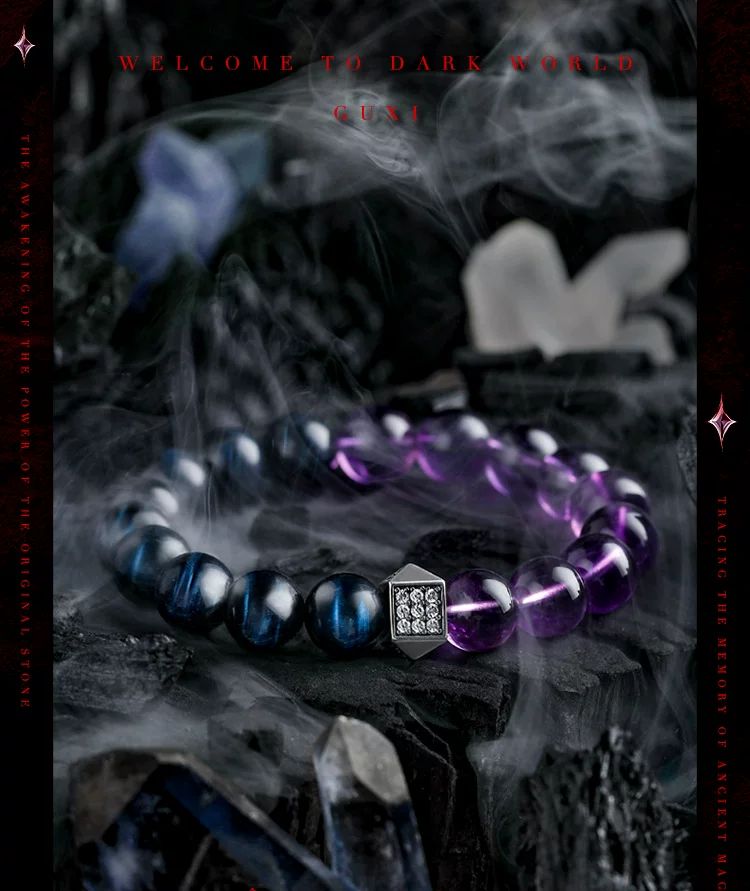 GUXI【星痕】复古小众紫水晶手链男士高级感蓝虎眼石手串轻奢饰品