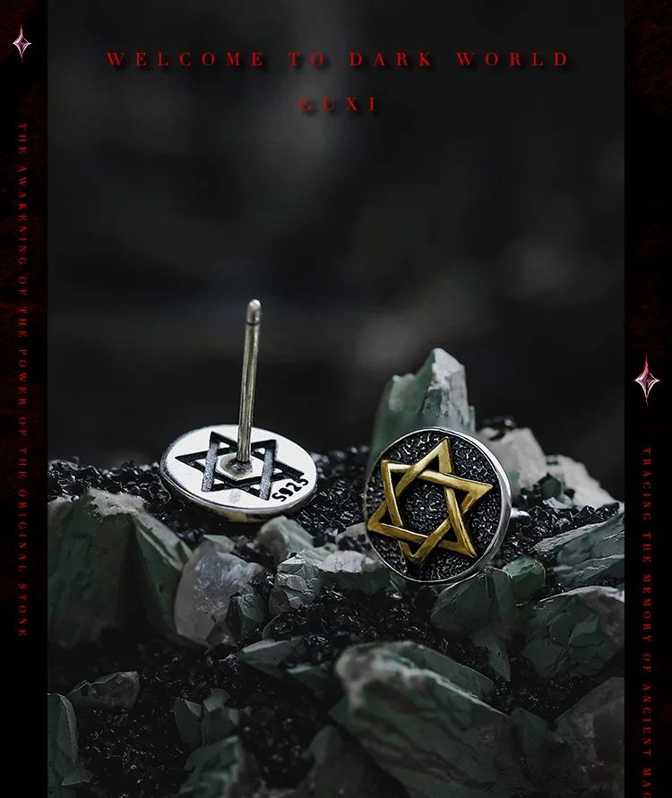 GUXI【星纪】原创小众925银耳钉男士高级感六芒星复古耳饰养耳洞