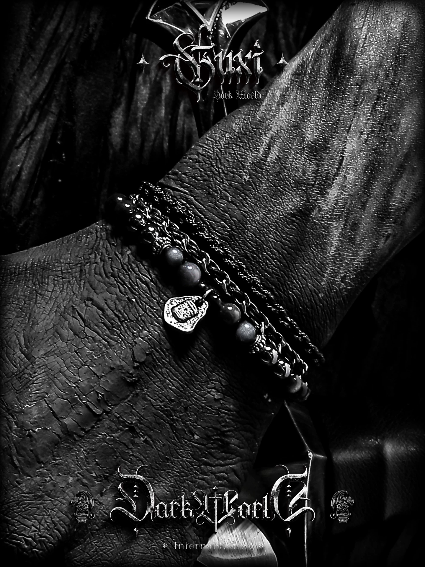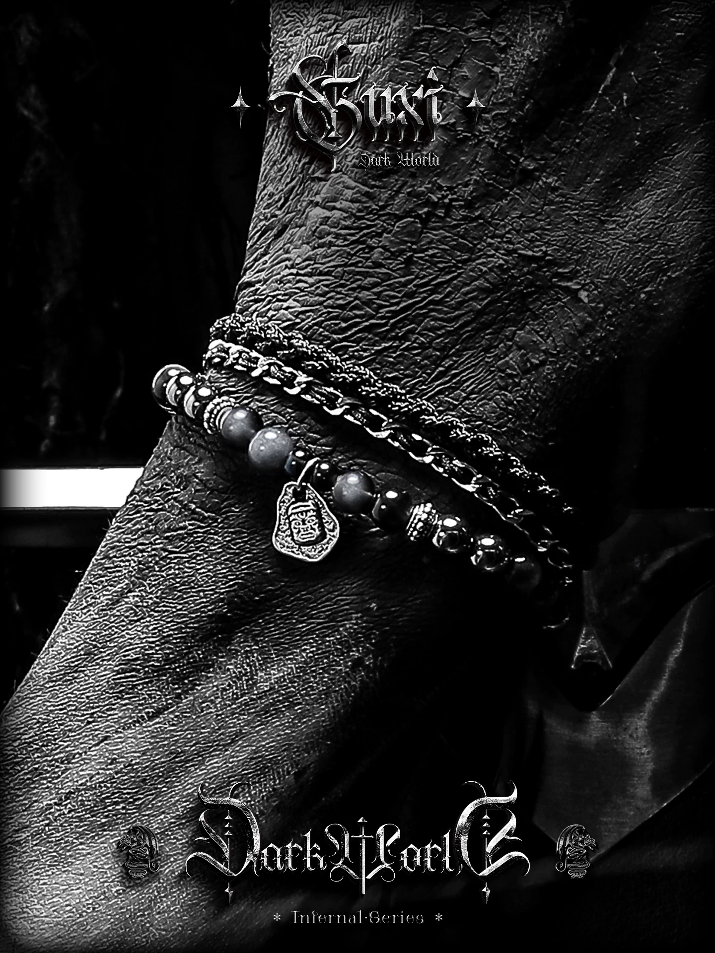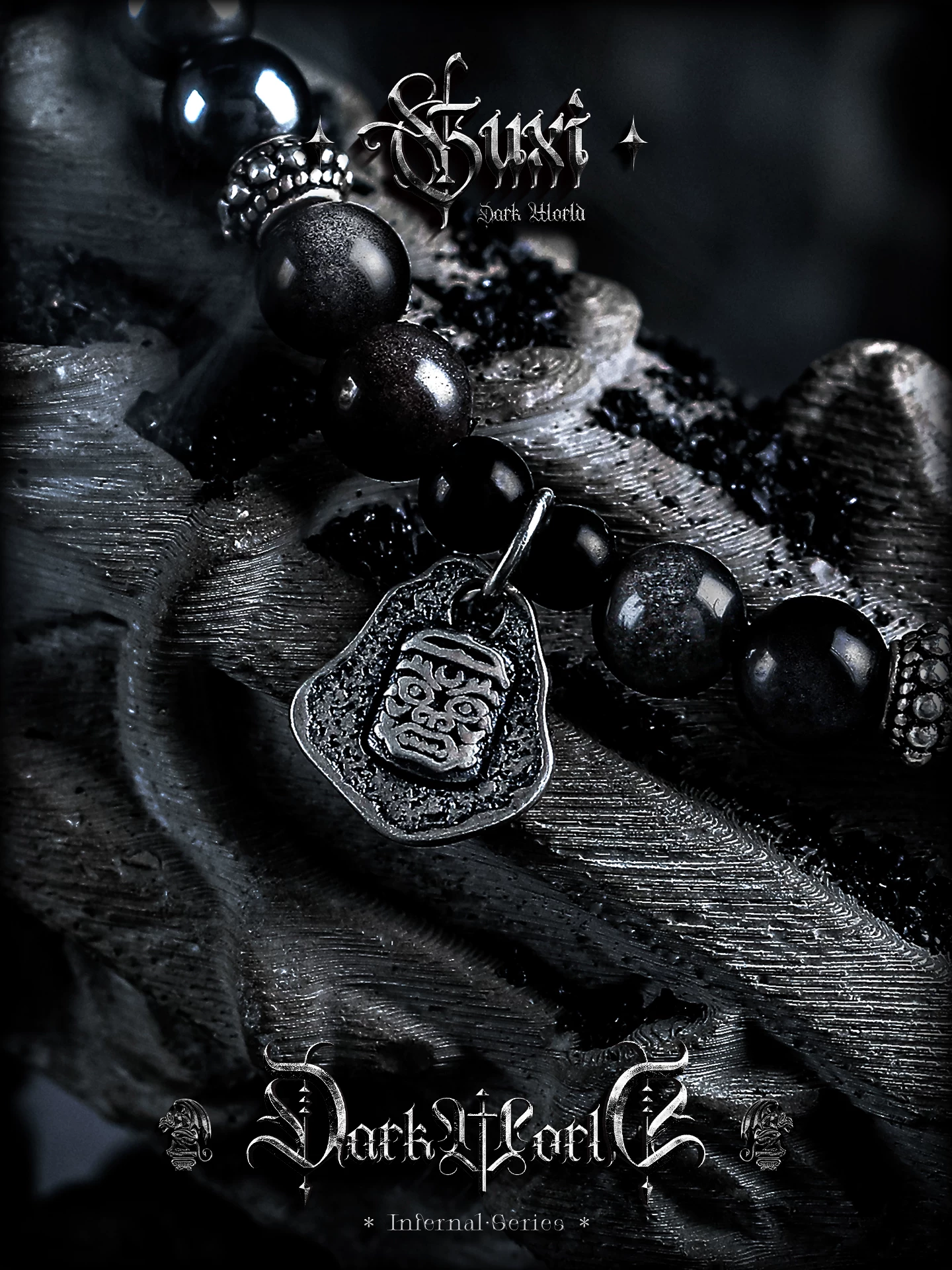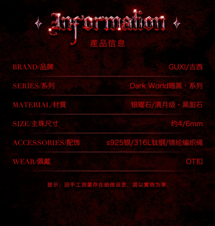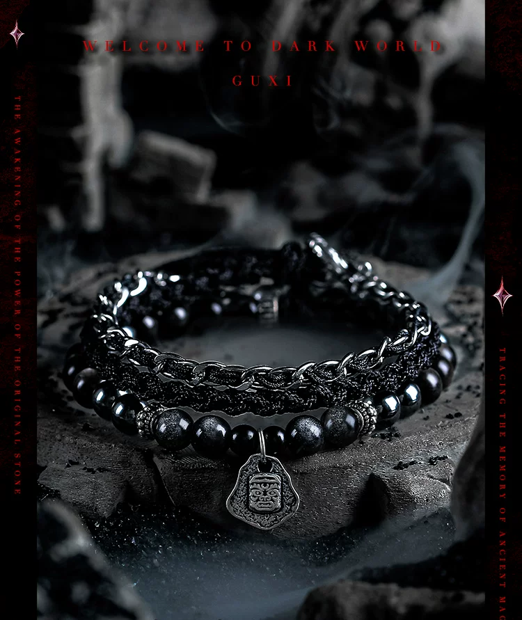 是第一个审查"GUXI【暗徽】暗黑风银黑曜石手链男黑胆石珠子手串编织手绳叠戴潮"
