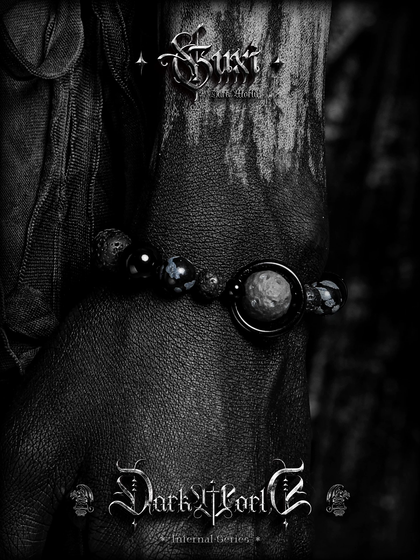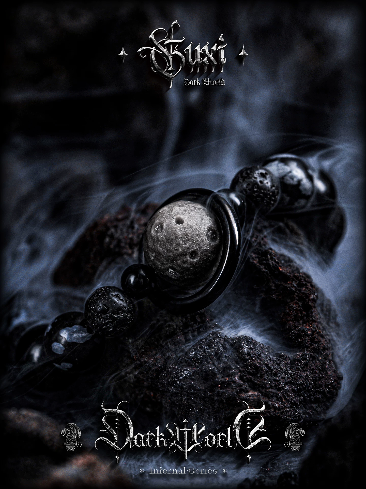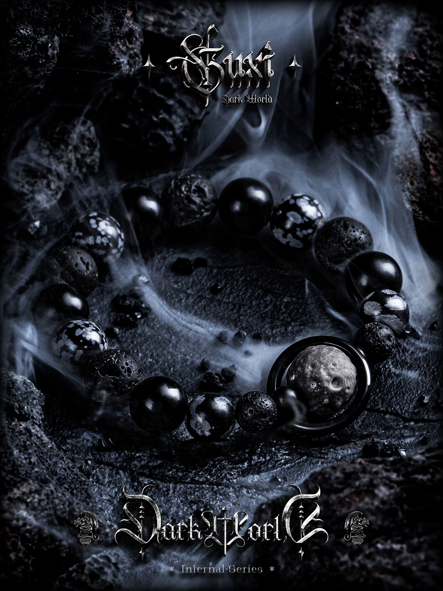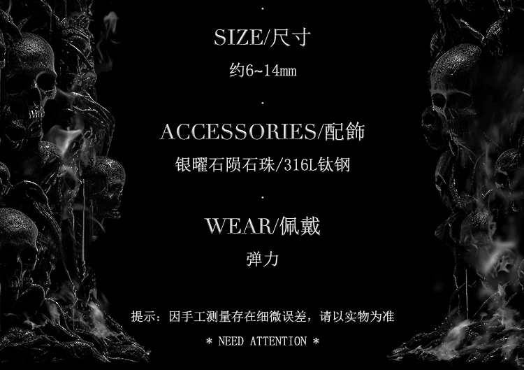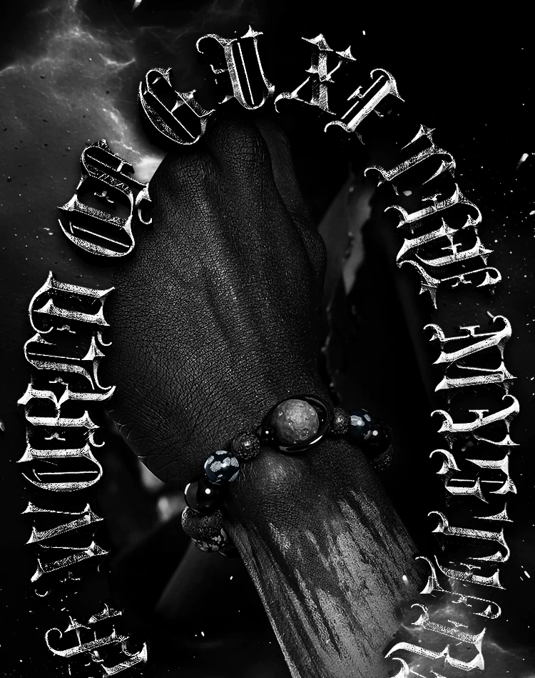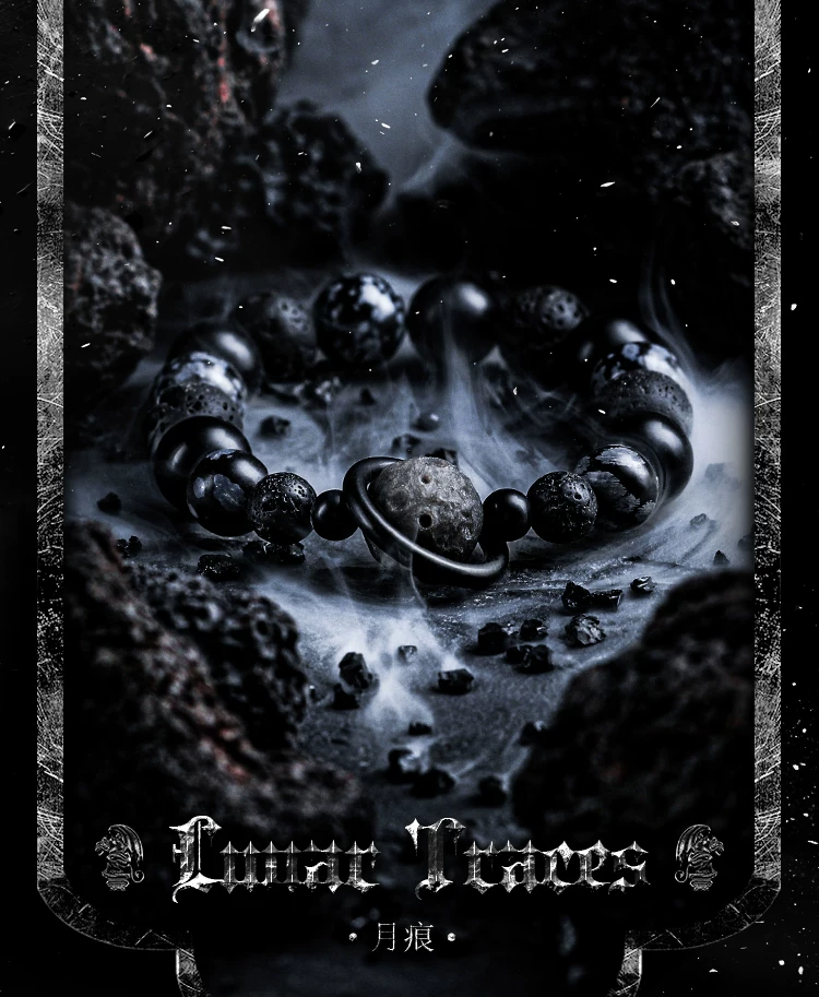 GUXI【月痕】暗黑风雪花黑曜石手链男小众火山石手串复古个性礼物