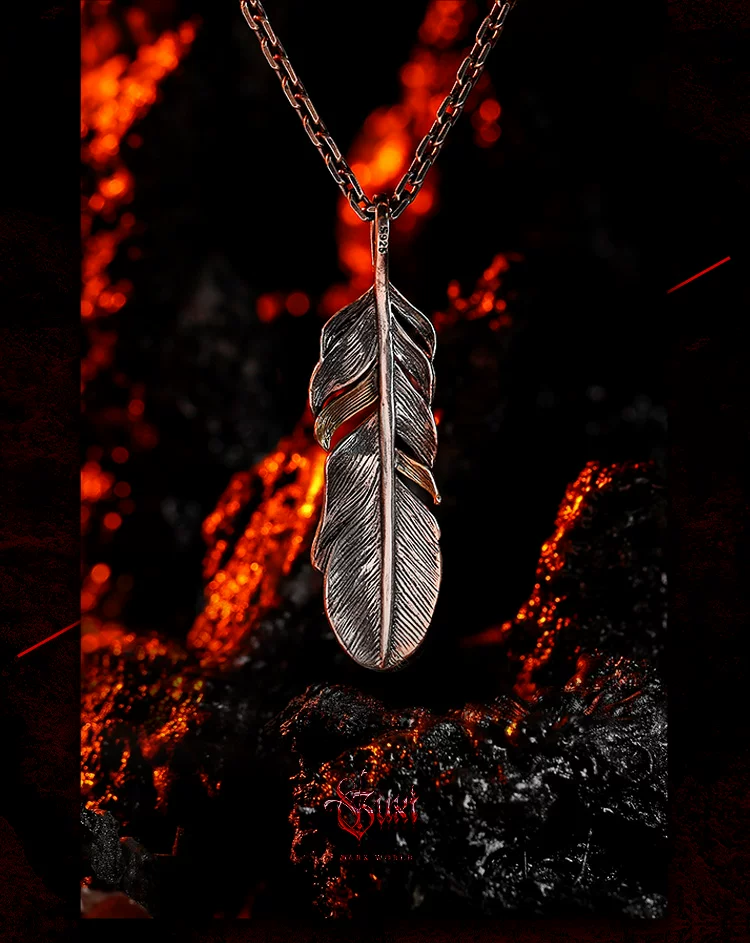 GUXI【涅槃】原创复古羽毛吊坠男925银项链高级感送男友礼物小众