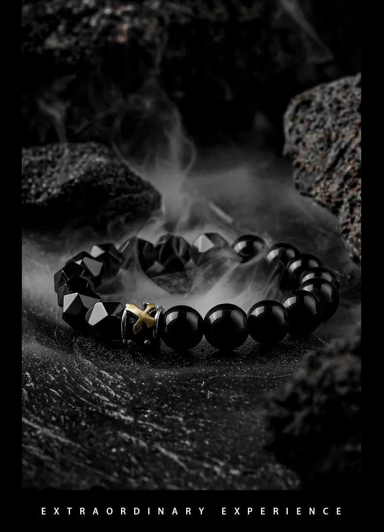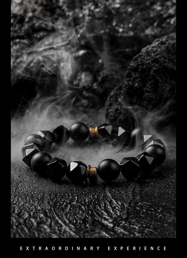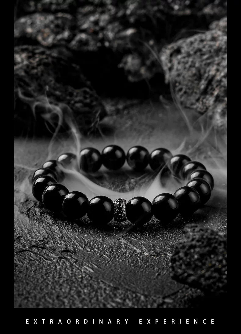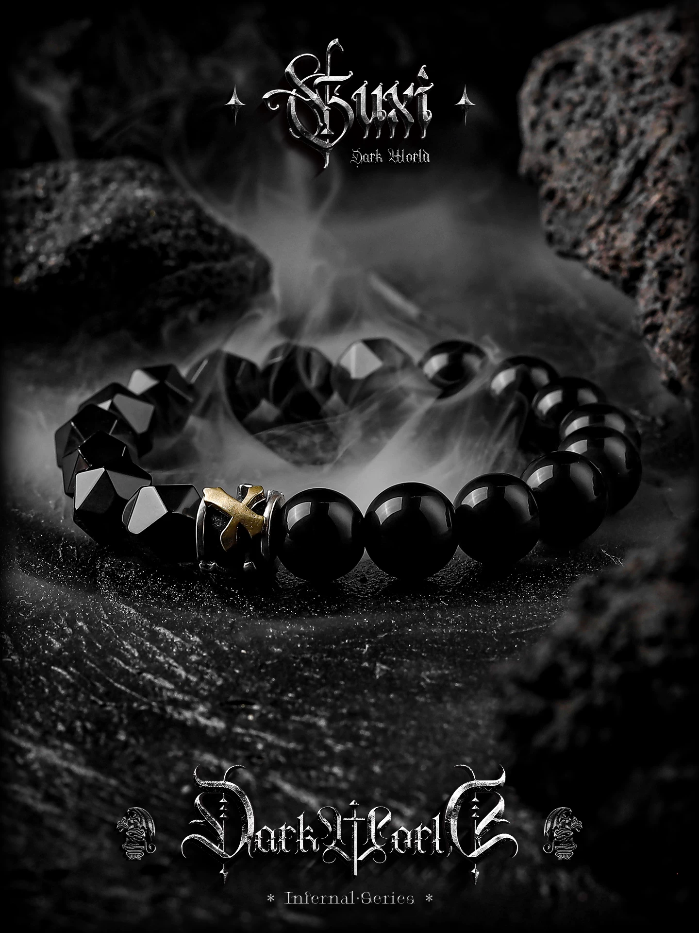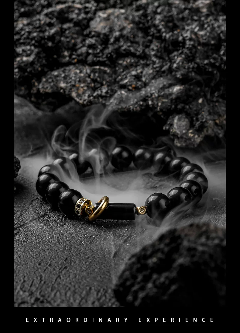 GUXI【深空】小众设计感黑玛瑙珠子手链男生潮 百搭高级感手饰品