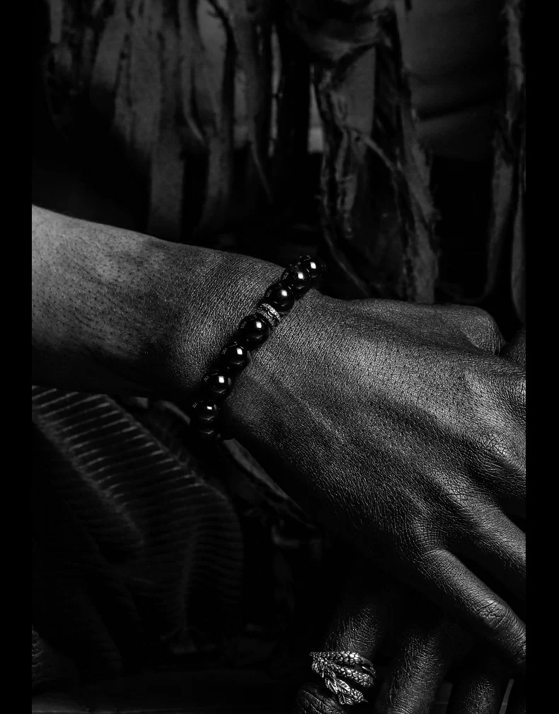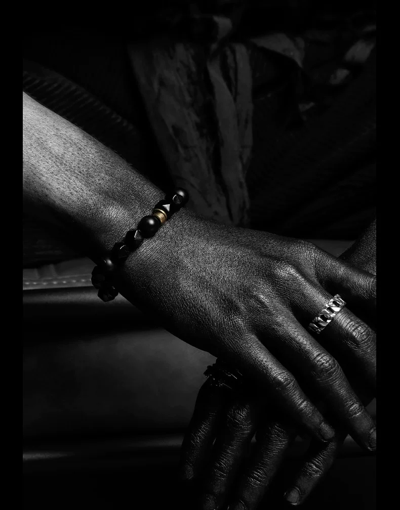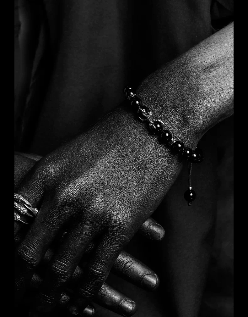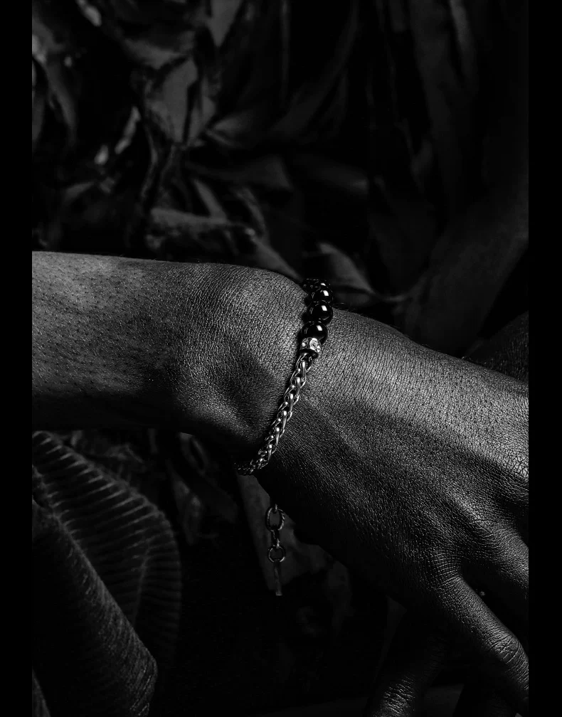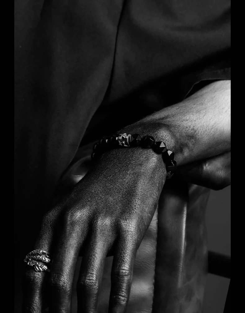 GUXI【深空】小众设计感黑玛瑙珠子手链男生潮 百搭高级感手饰品