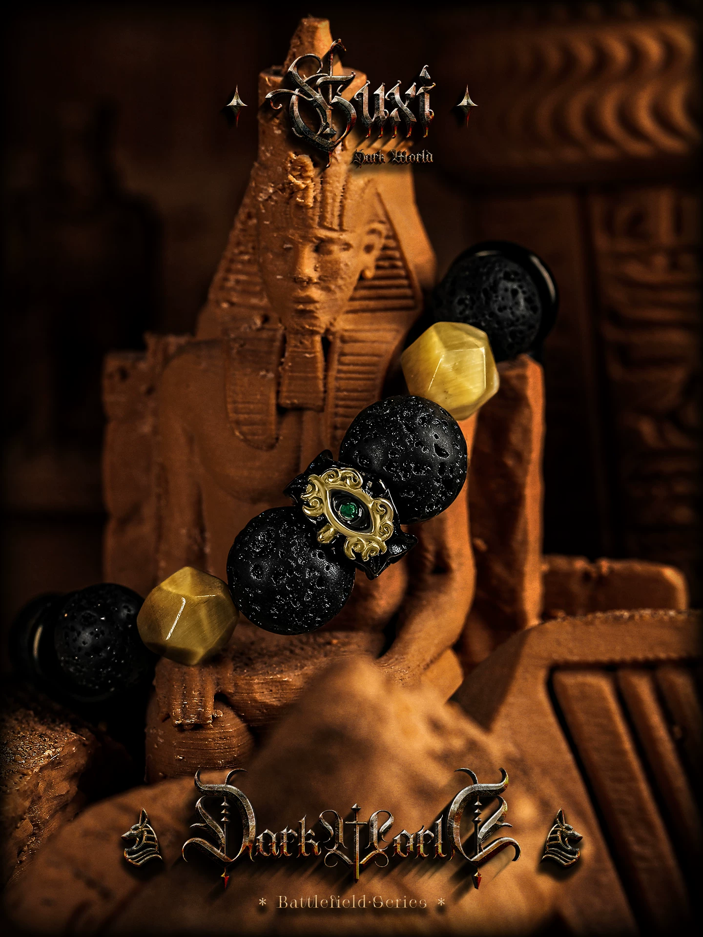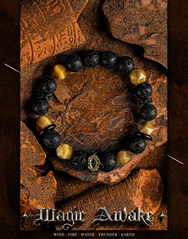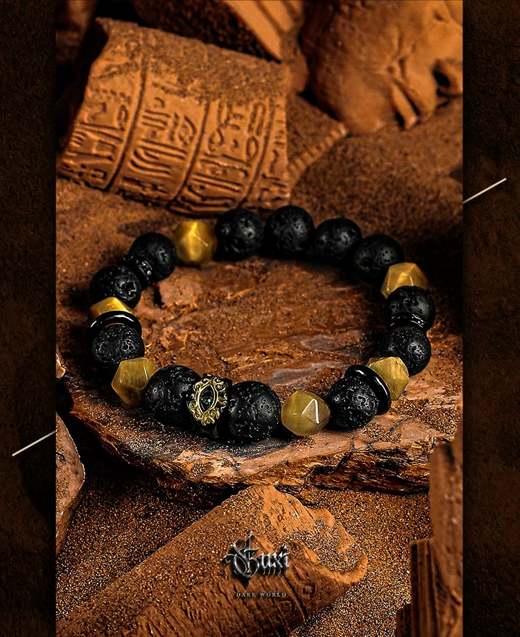 GUXI【炎瞳】金虎眼石手链男复古火山石手串珠子百搭简约饰品礼物
