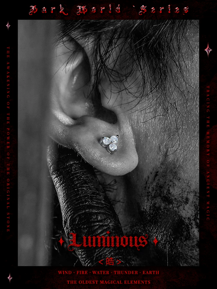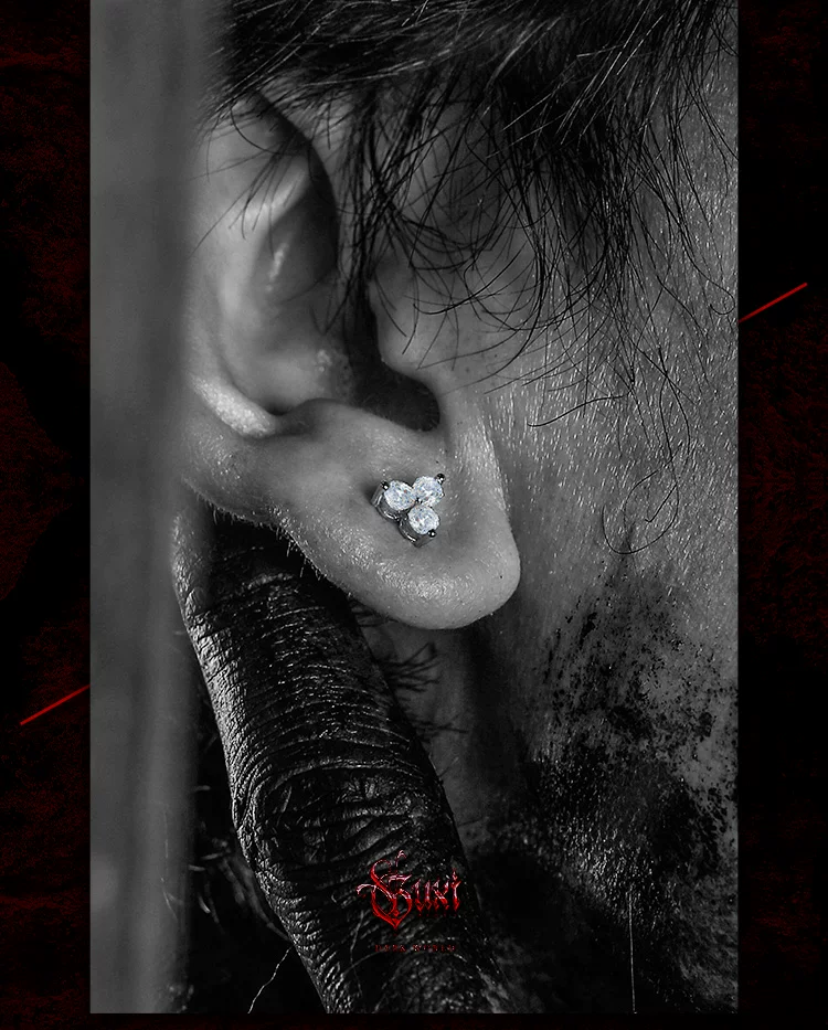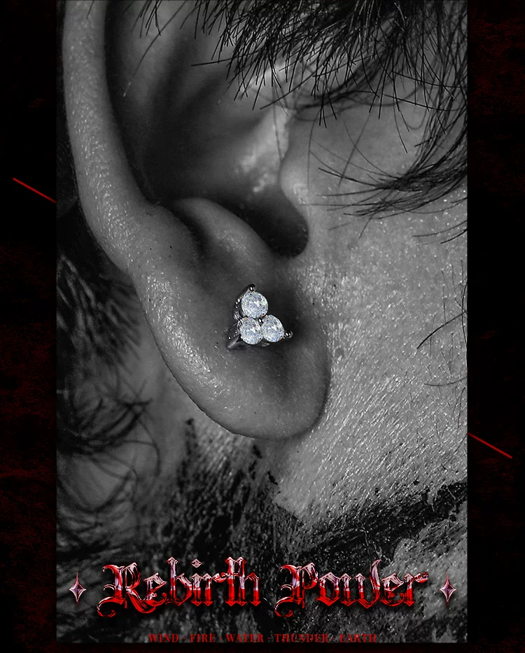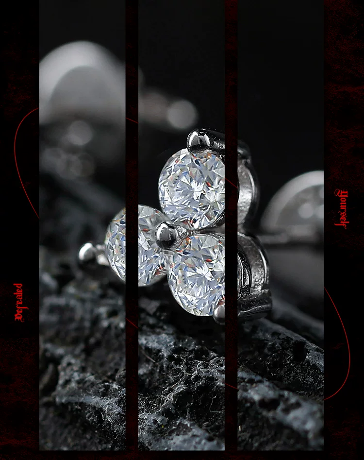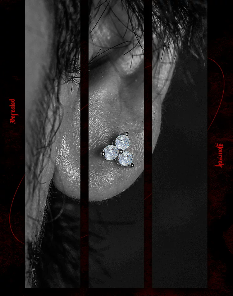 GUXI【皓】暗黑风莫桑石耳钉男单只925银耳饰养耳洞复古百搭饰品