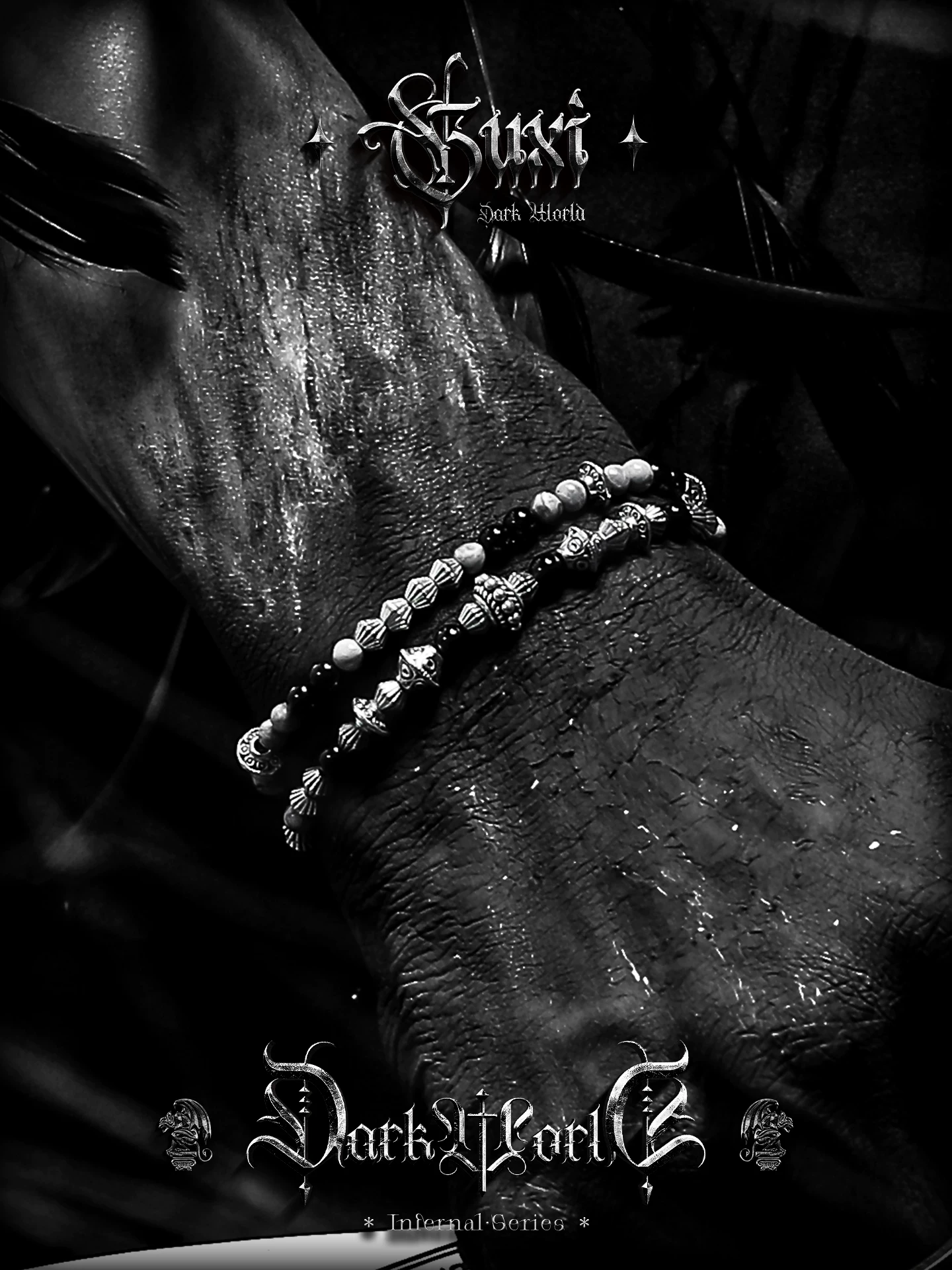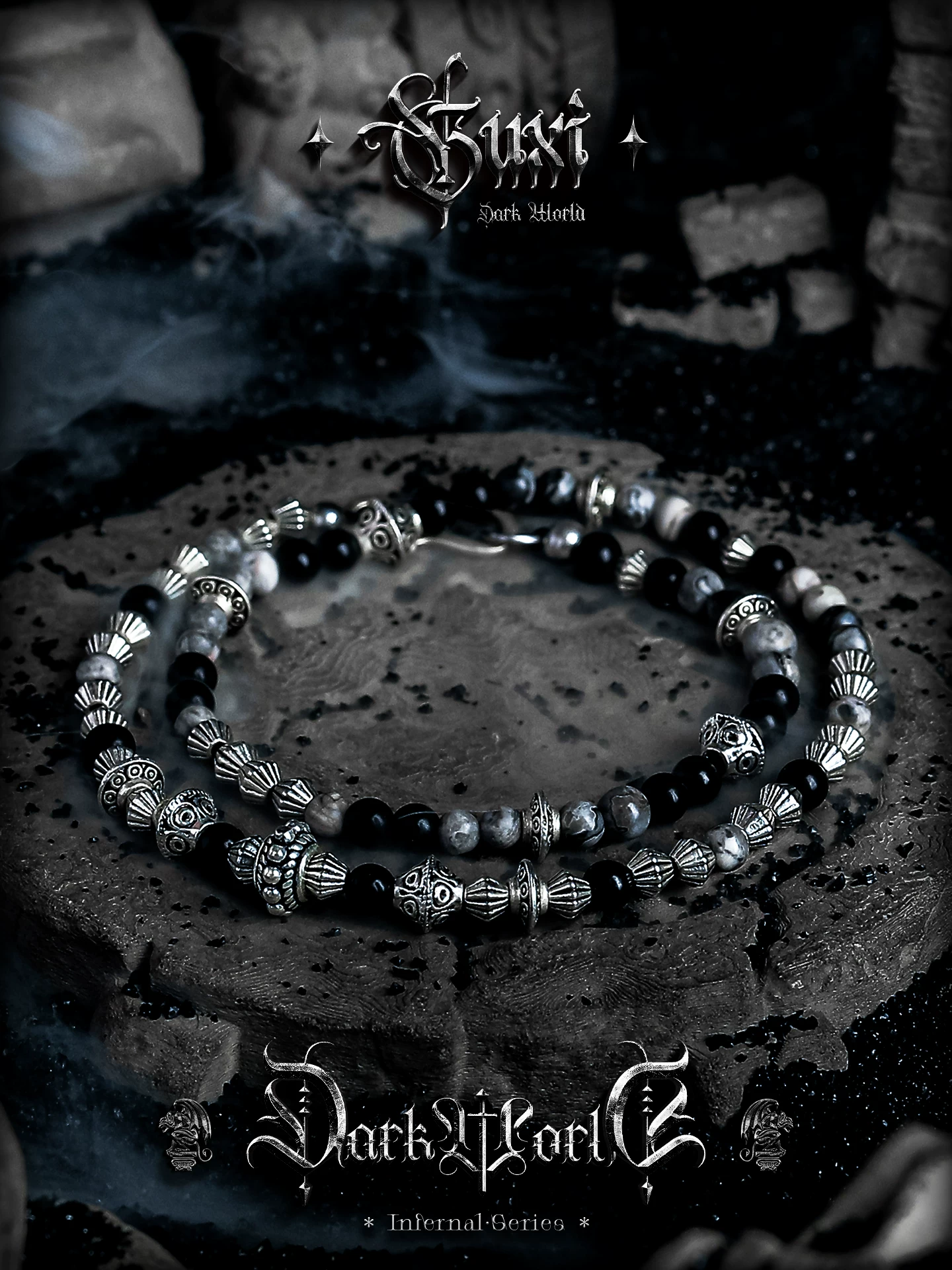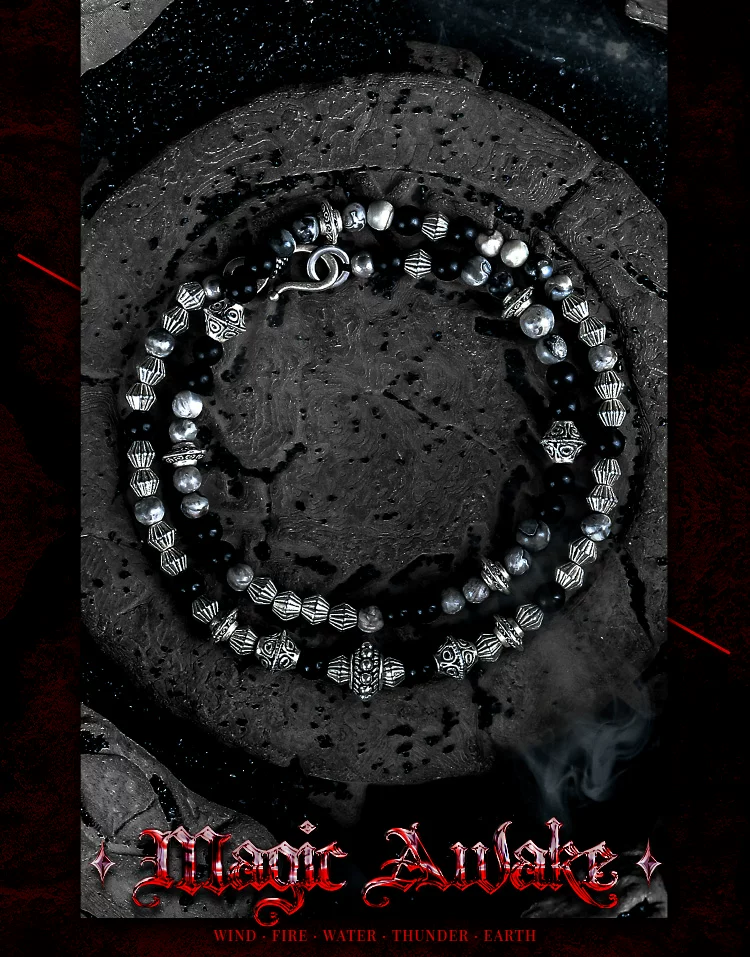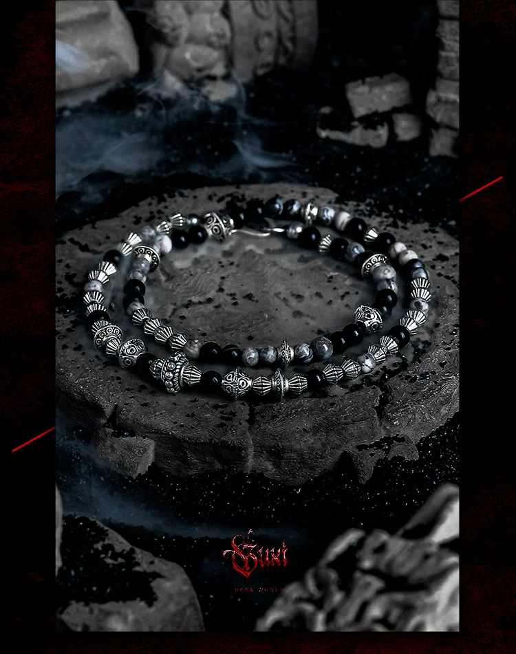 是第一个审查"GUXI【破碎】暗黑风黑曜石手链男生复古双层手串珠地图石叠戴饰品"