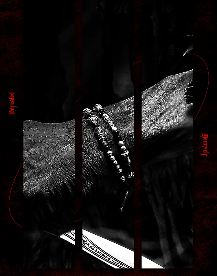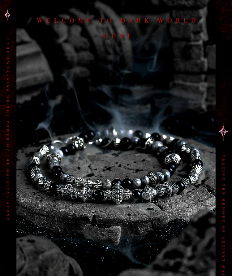 GUXI【破碎】暗黑风黑曜石手链男生复古双层手串珠地图石叠戴饰品