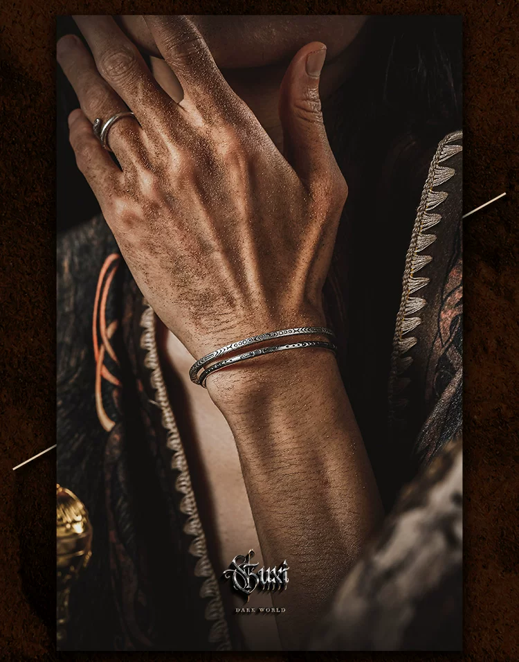 GUXI【祈望】复古原创925银手镯男高级感小众手环送男友生日礼物