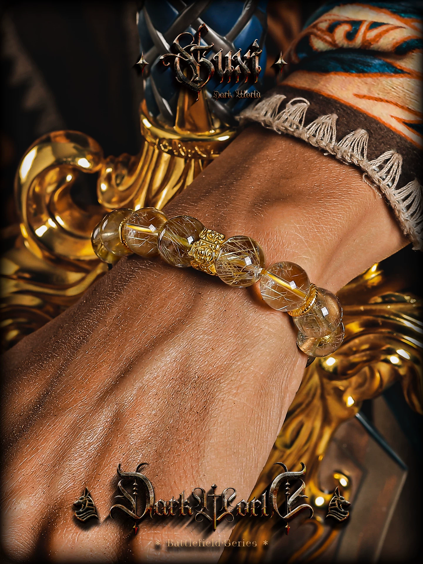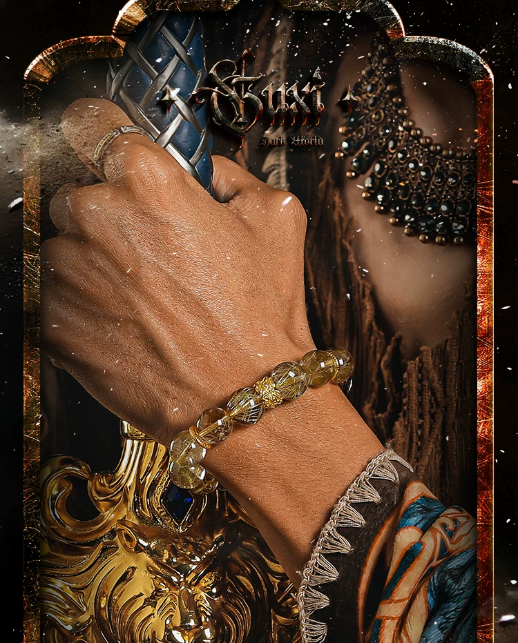 GUXI【羲光】天然金发晶手链男高级感轻奢水晶手串珠生日礼物新年