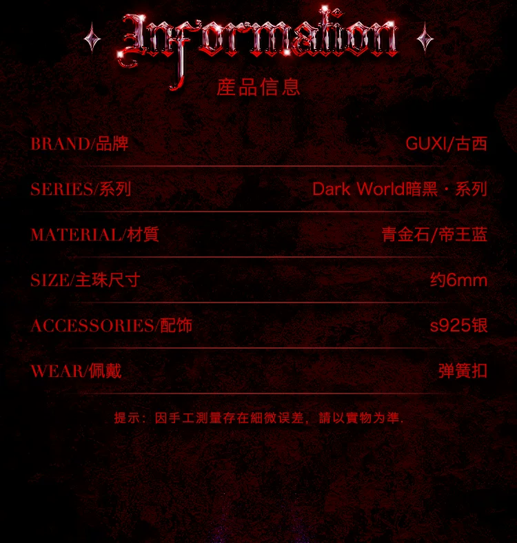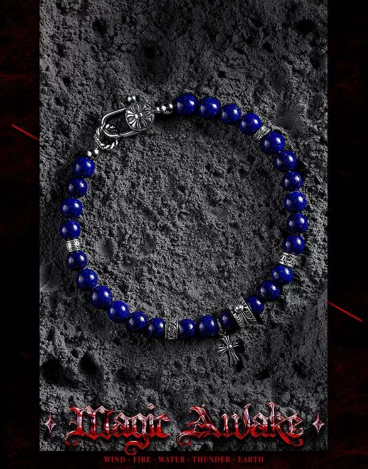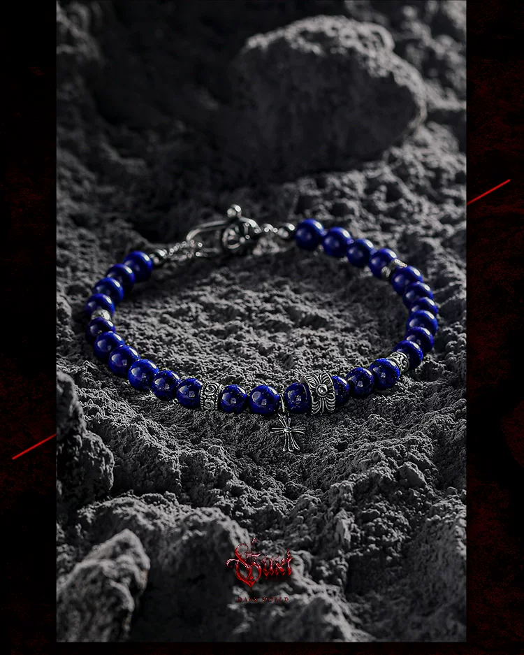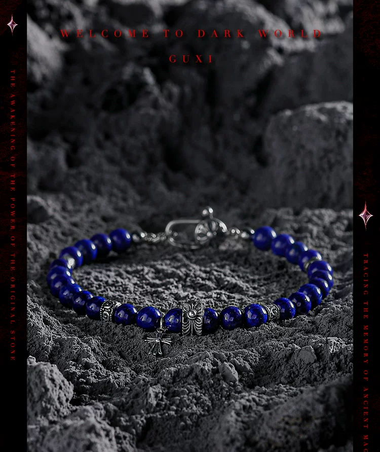 GUXI【苍穹】阿富汗老料青金石手链男生复古小众手串珠礼物暗黑风
