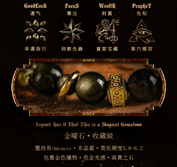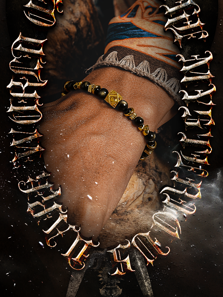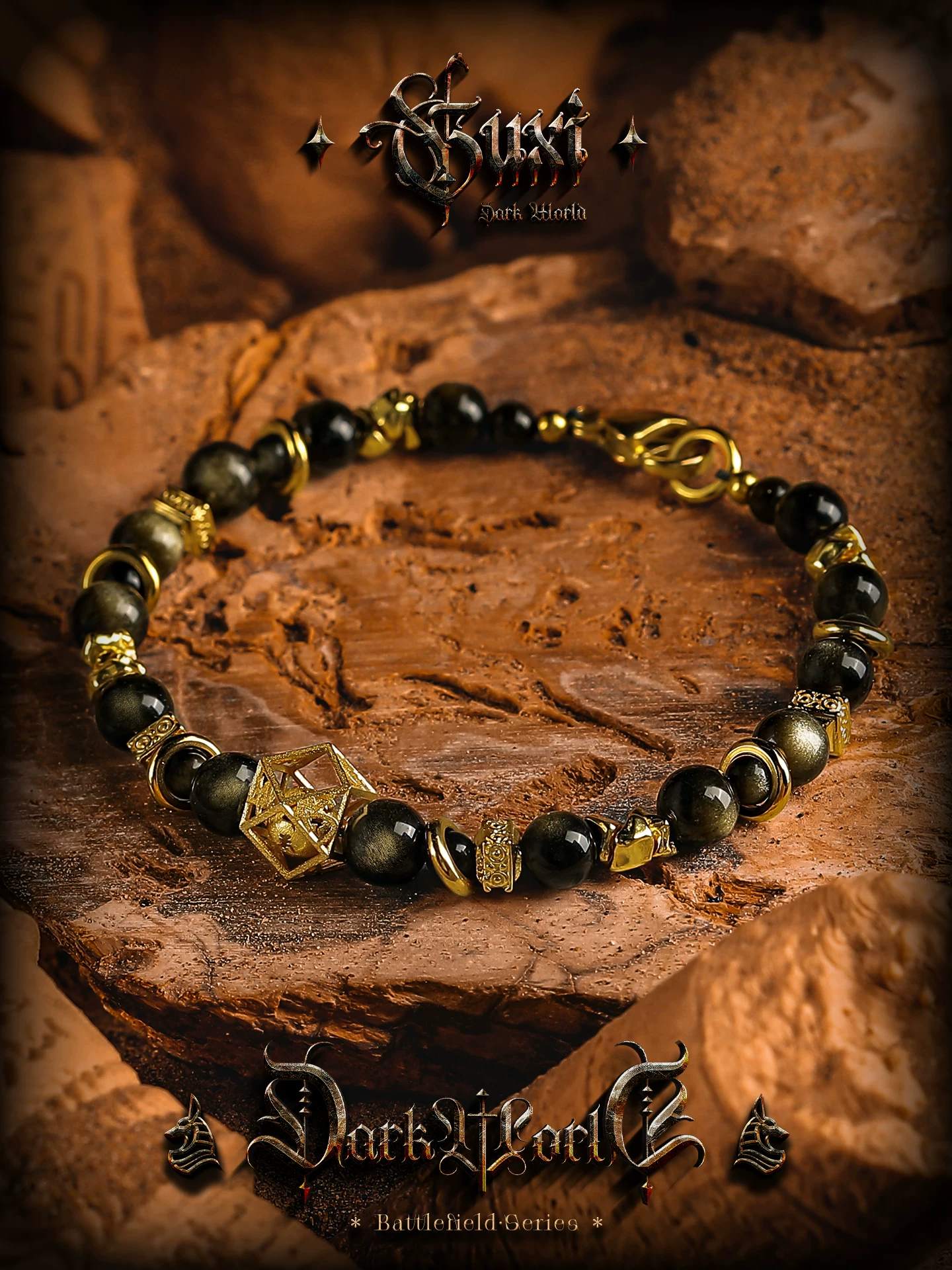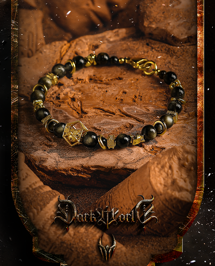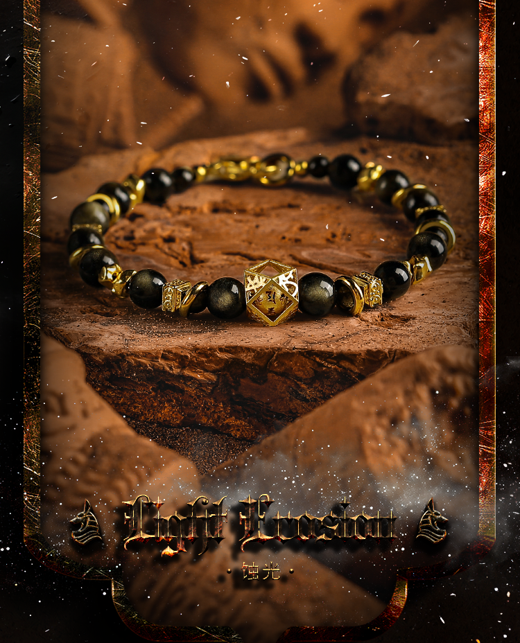 GUXI【蚀光】复古小众设计金黑曜石手链男六字箴言手串潮个性饰品