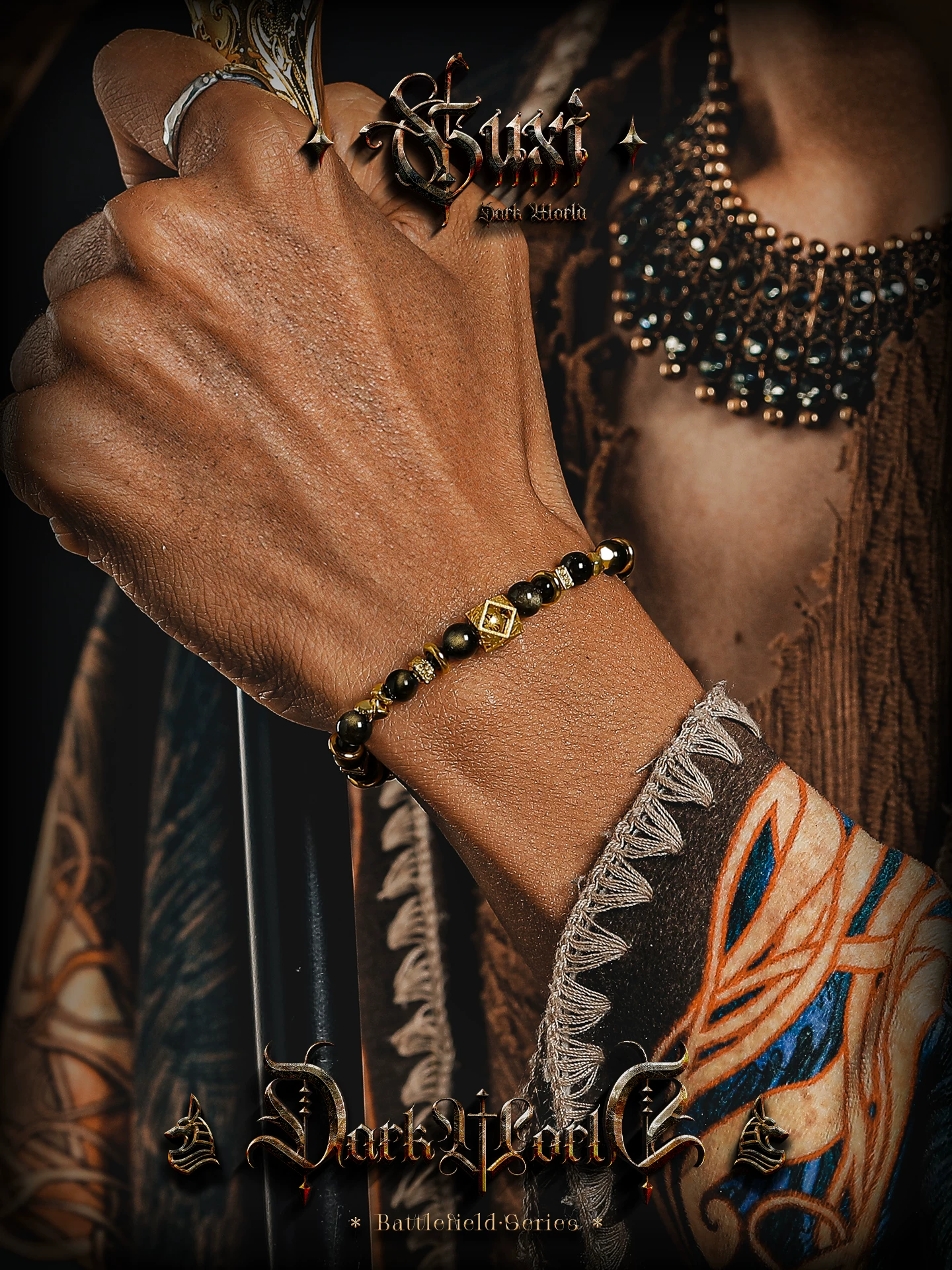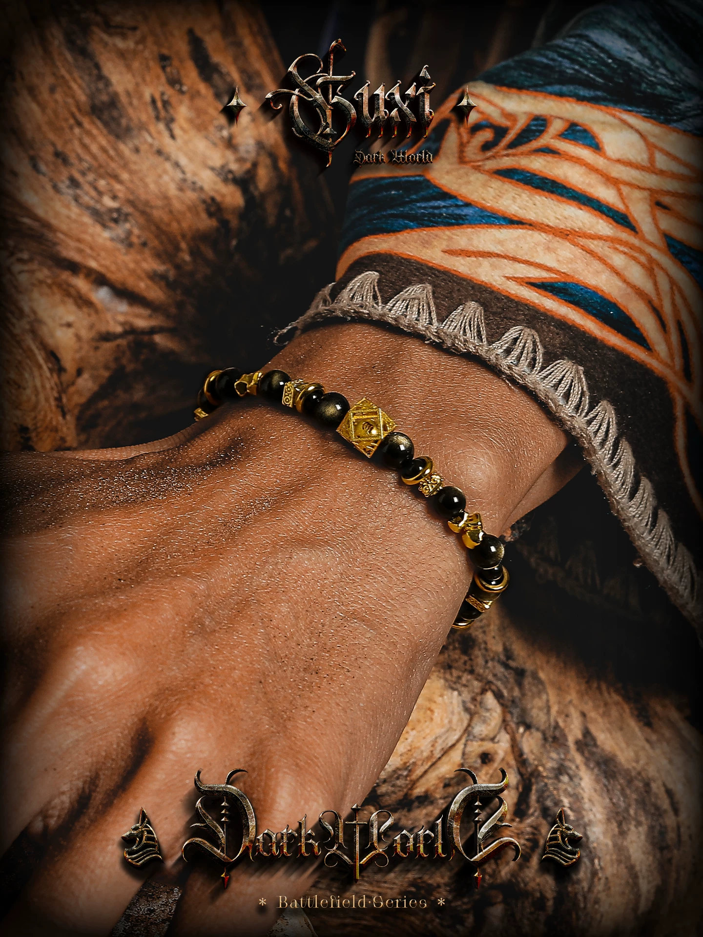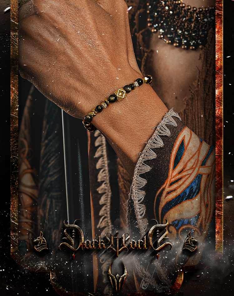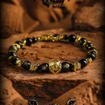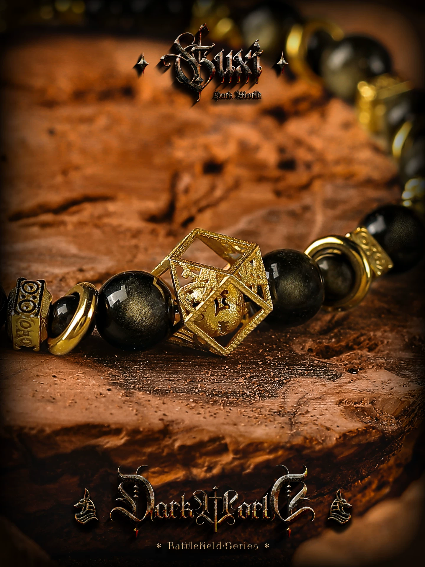 GUXI【蚀光】复古小众设计金黑曜石手链男六字箴言手串潮个性饰品