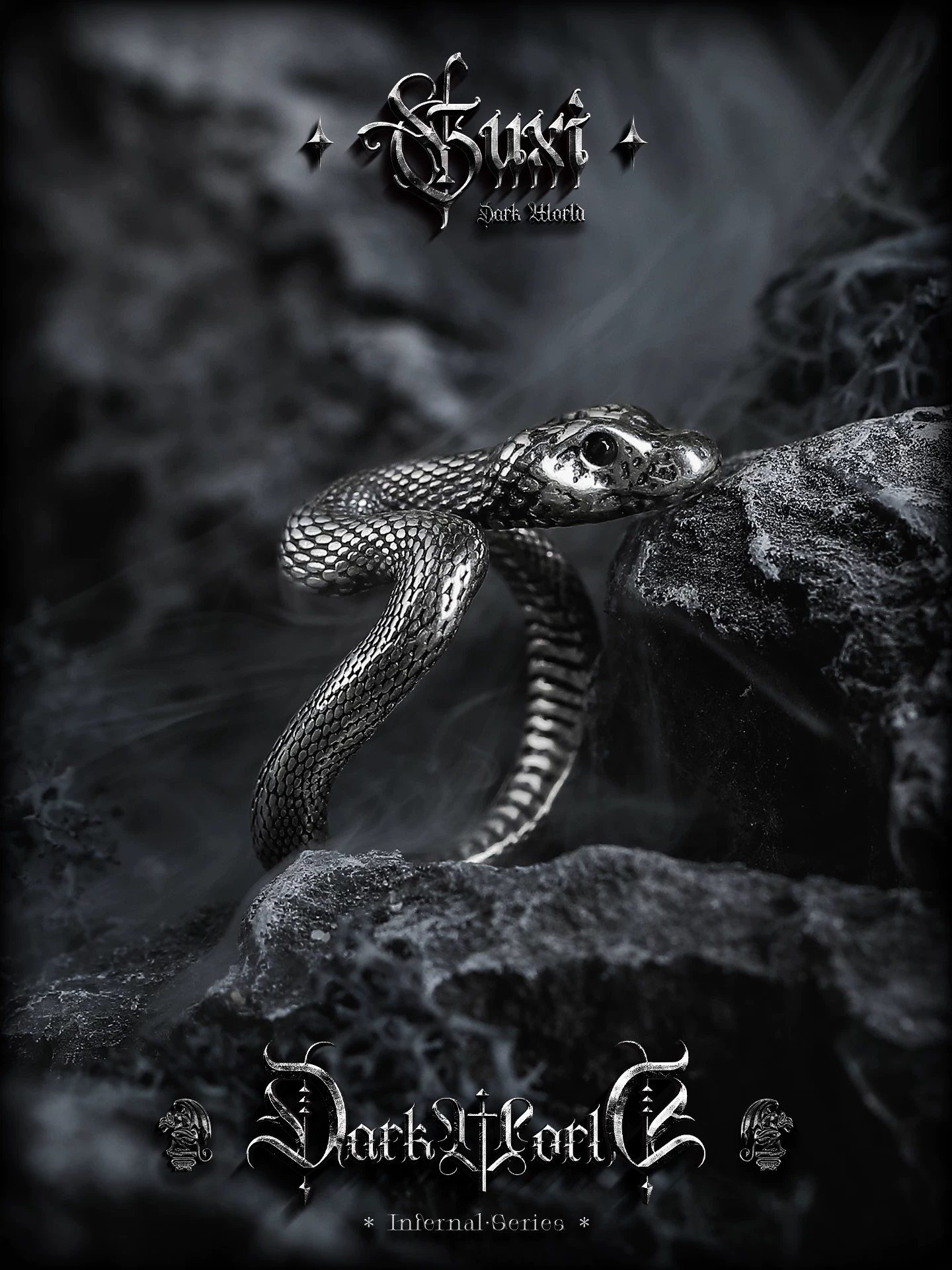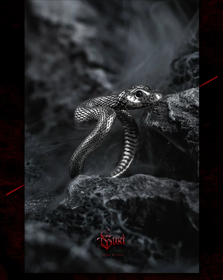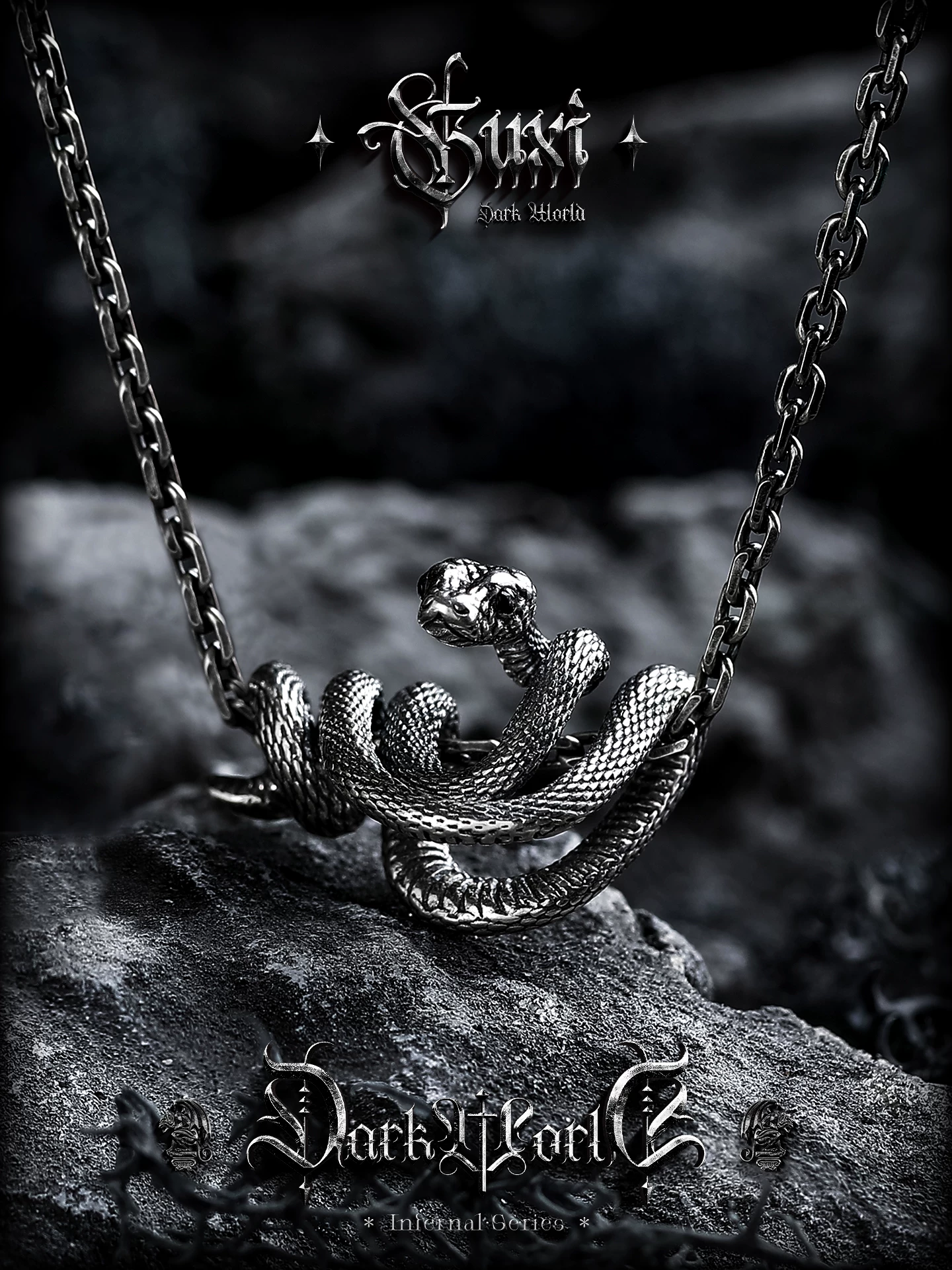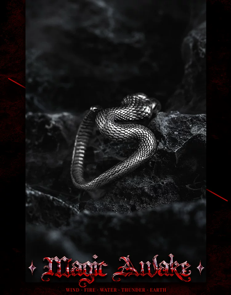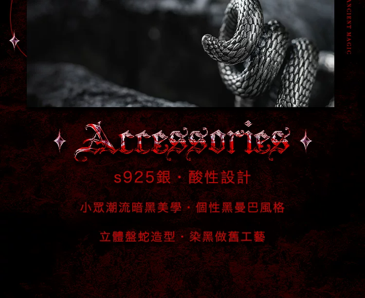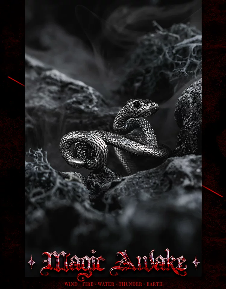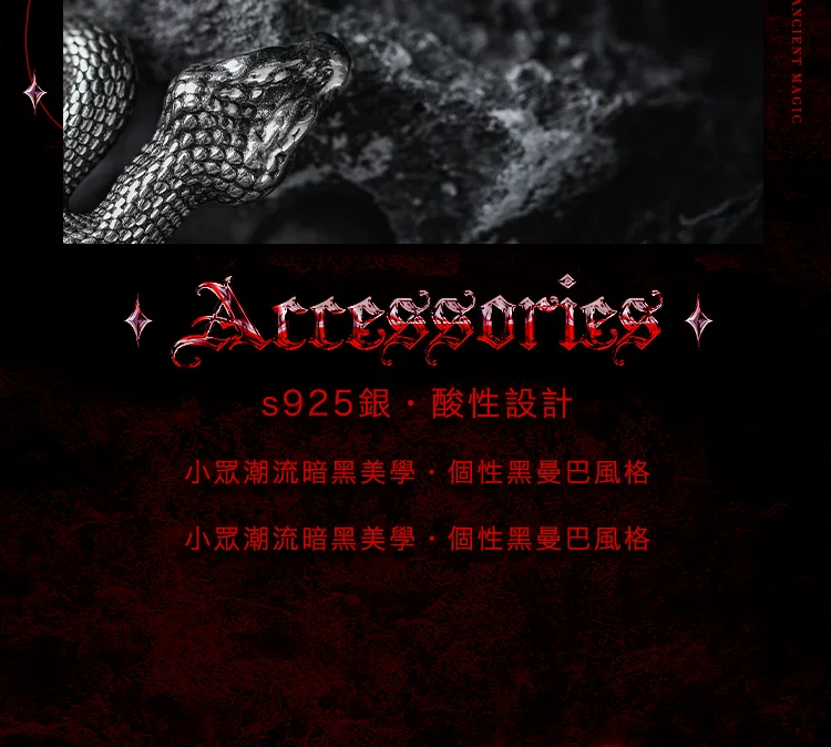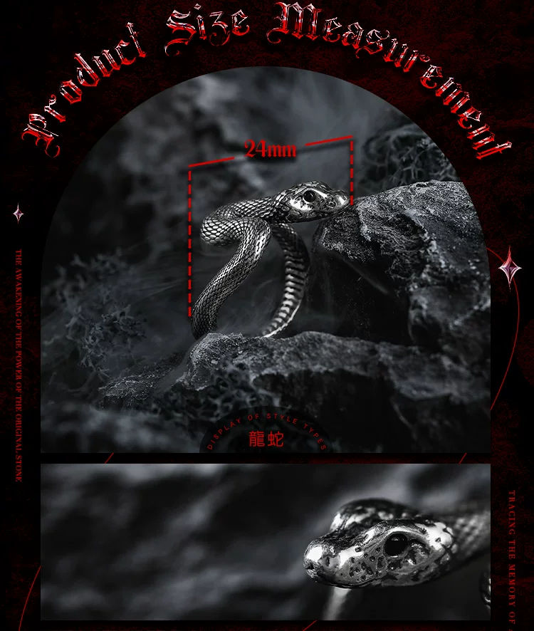 蛇影 s925银太角链+银吊坠, 蛇影 钛钢太角链+银吊坠, 龙蛇 约8码(开口)