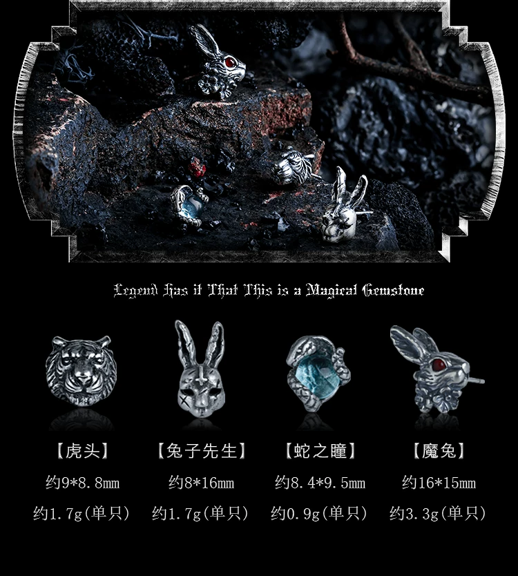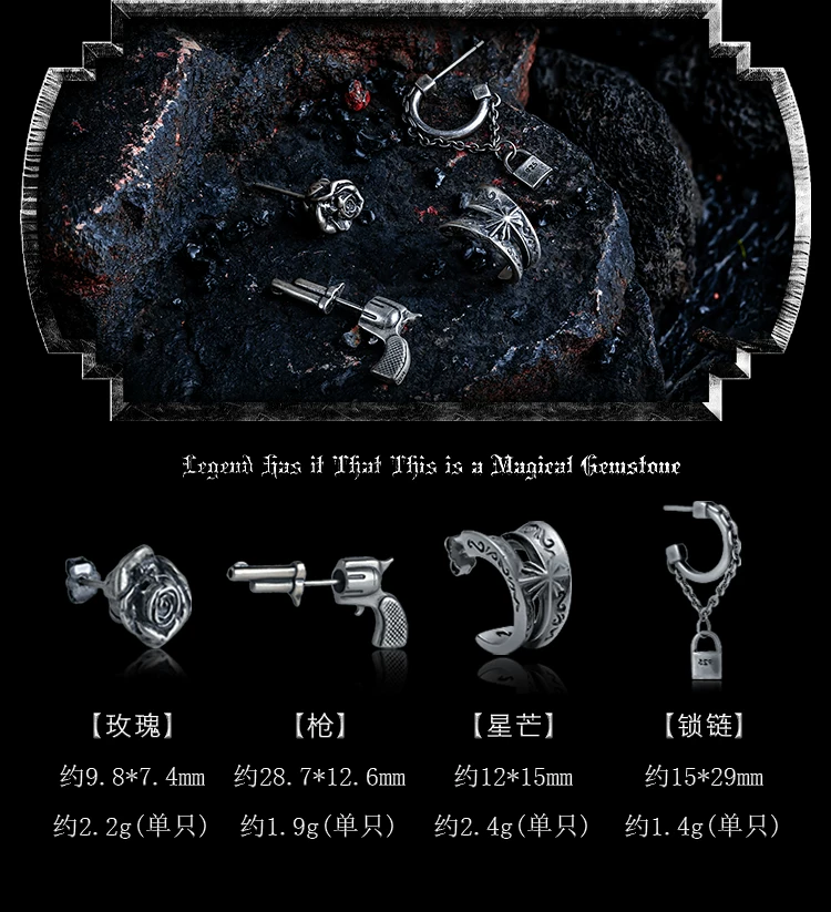 一字螺丝钉(单只), 光(单只), 兔子先生(单只), 十字螺丝钉(单只), 多边形(单只), 守护之星(单只), 守护之灵(单只), 守护之眼(单只), 方形(单只), 星芒(单只), 昼夜黑色款(单只), 枪(单只), 枷锁(单只), 棱锥款(单只), 玫瑰(单只), 禁域(单只), 虎头(单只), 蛇之瞳(单只), 魔兔(单只), 齿轮(单只)