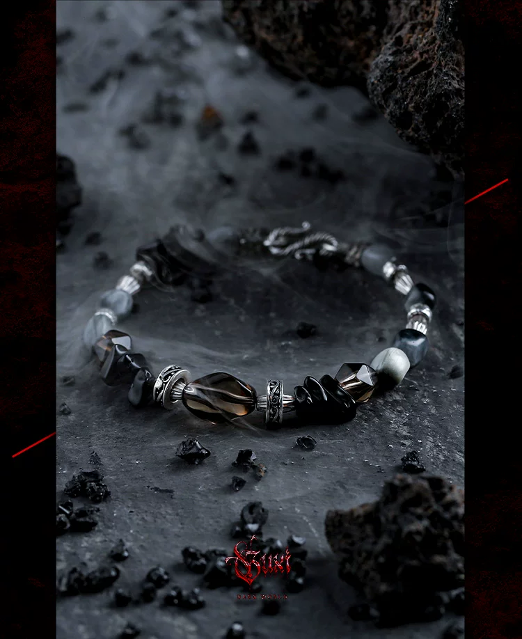 GUXI【记忆碎片】小众设计黑曜石手链男高级感鹰眼石水晶珠子手串