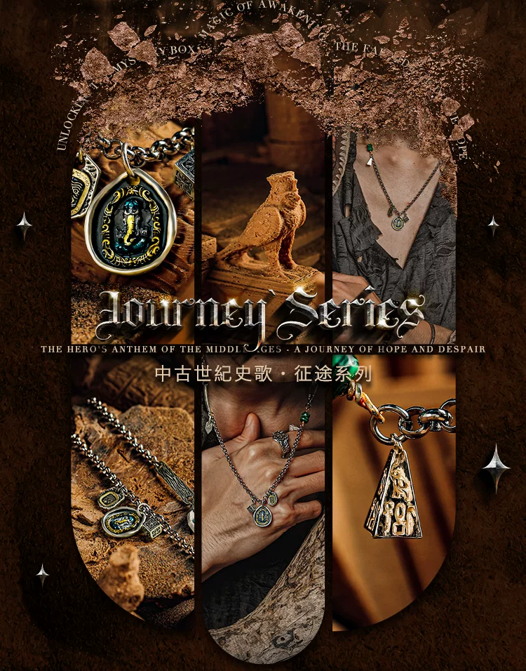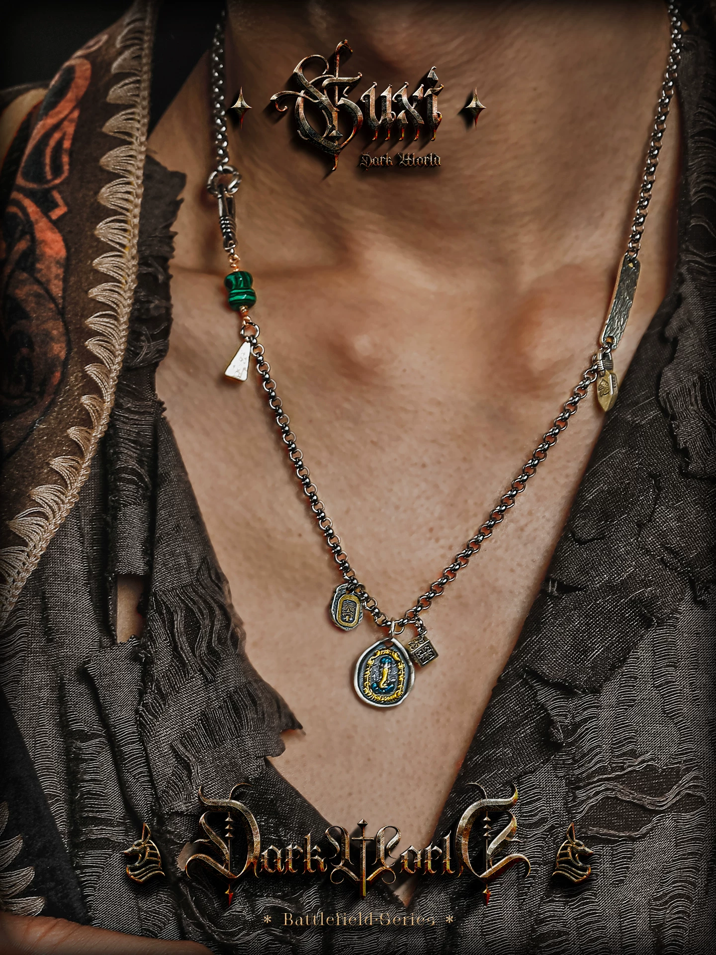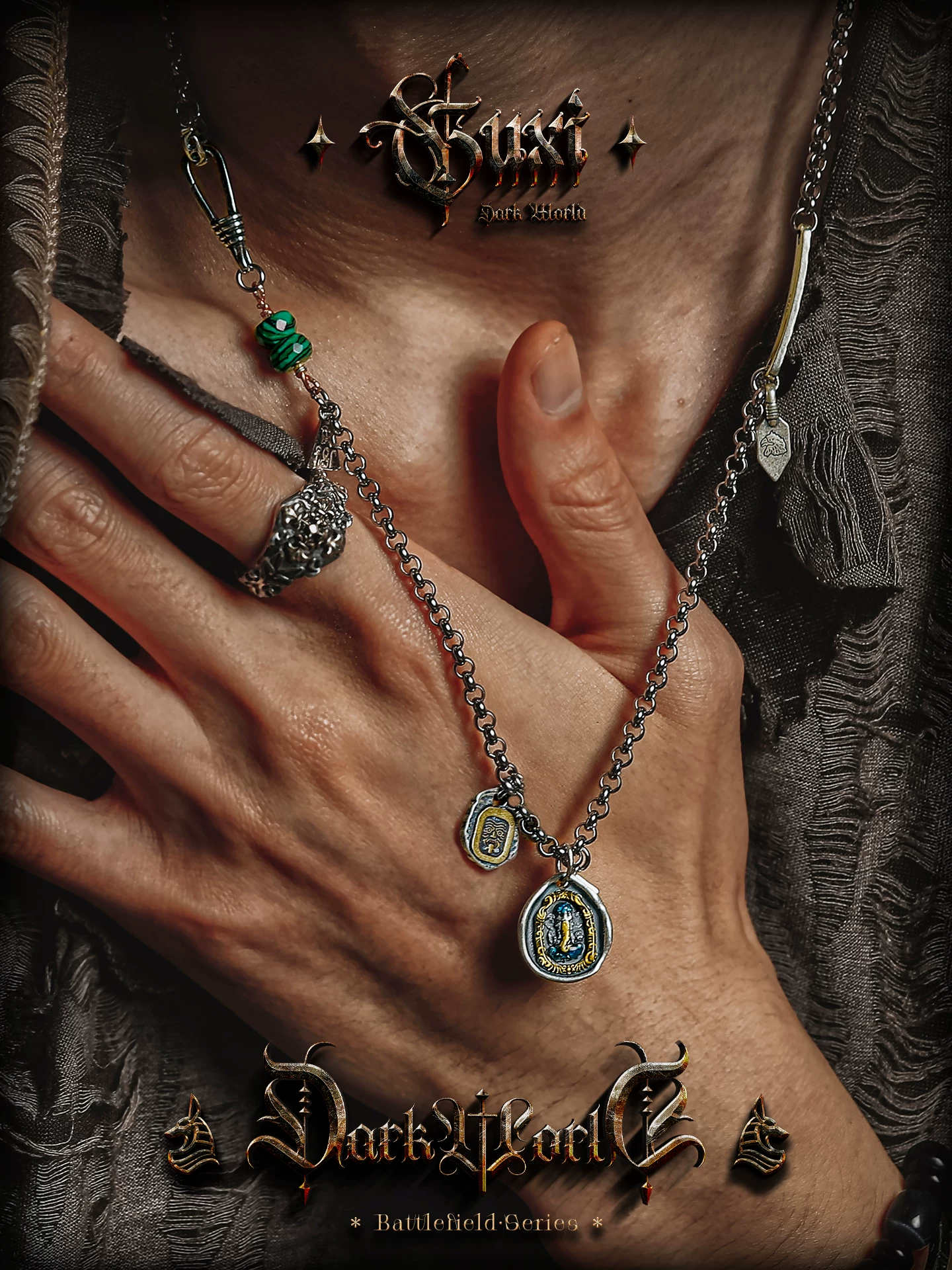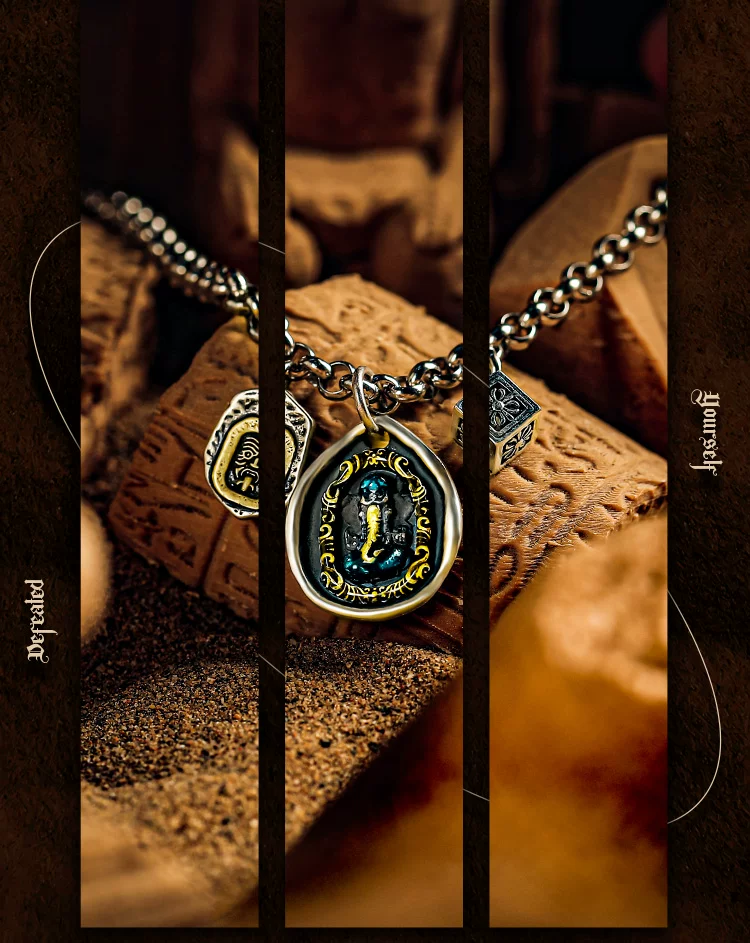 GUXI【询古】复古925银扎基拉姆项链男象神吊坠小众孔雀石毛衣链