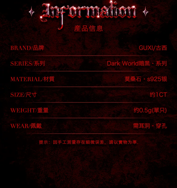 是第一个审查"GUXI【迭影】暗黑风复古莫桑石耳钉男单只养耳洞耳饰简约百搭银饰"