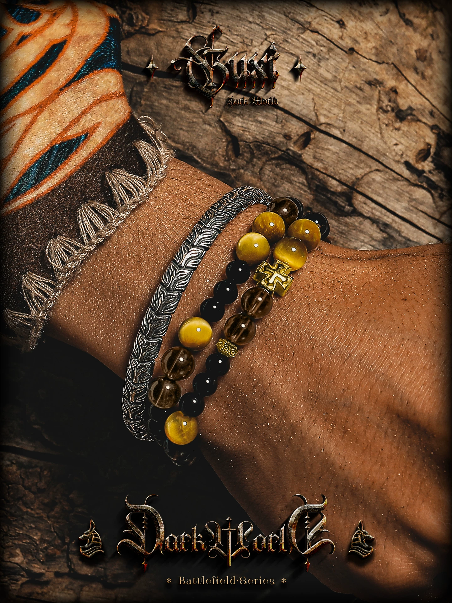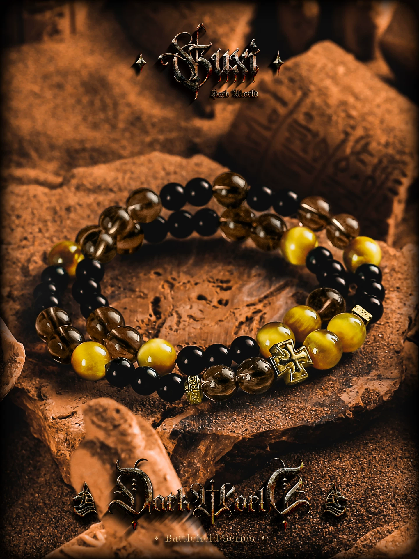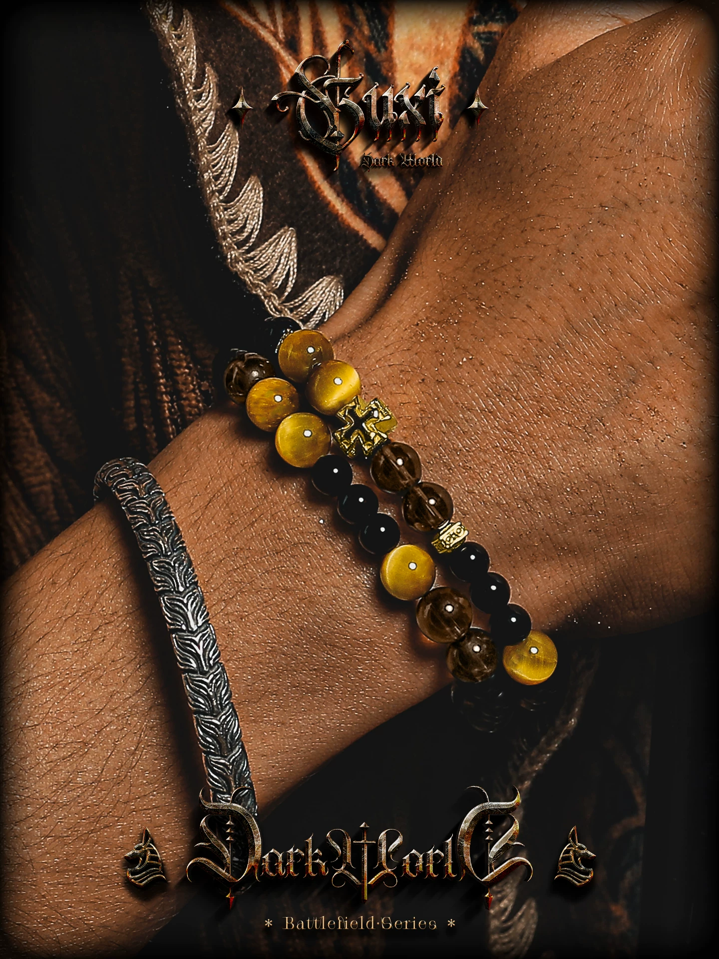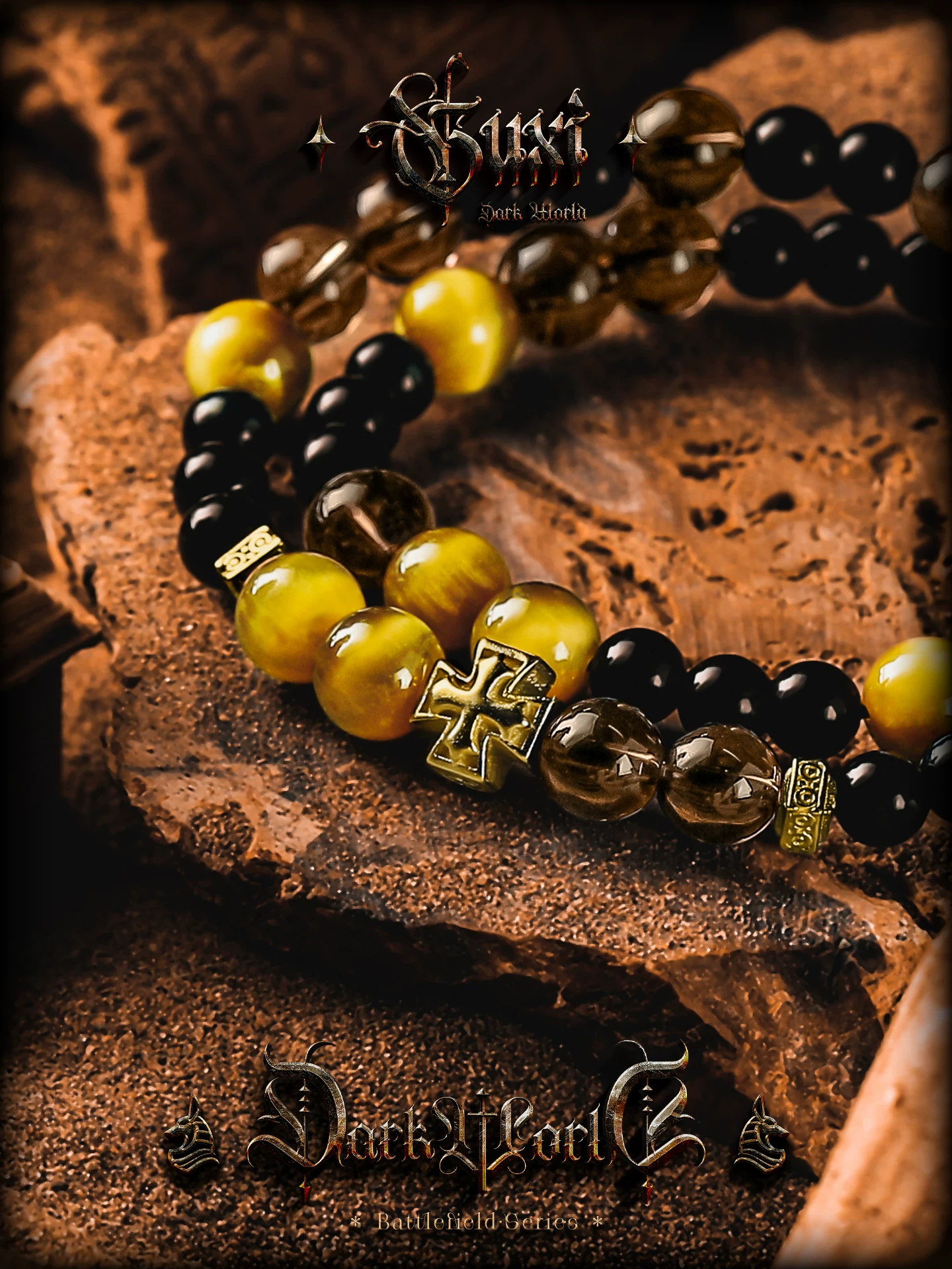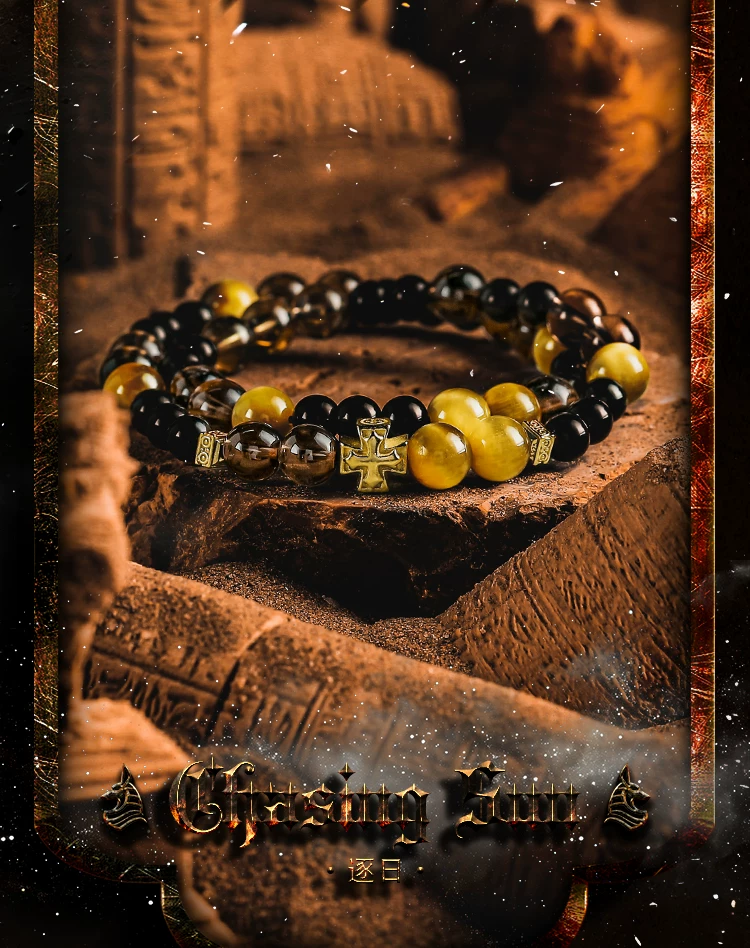 GUXI【逐日】天然黑曜石手链男茶水晶双多圈手串叠戴小众生日礼物